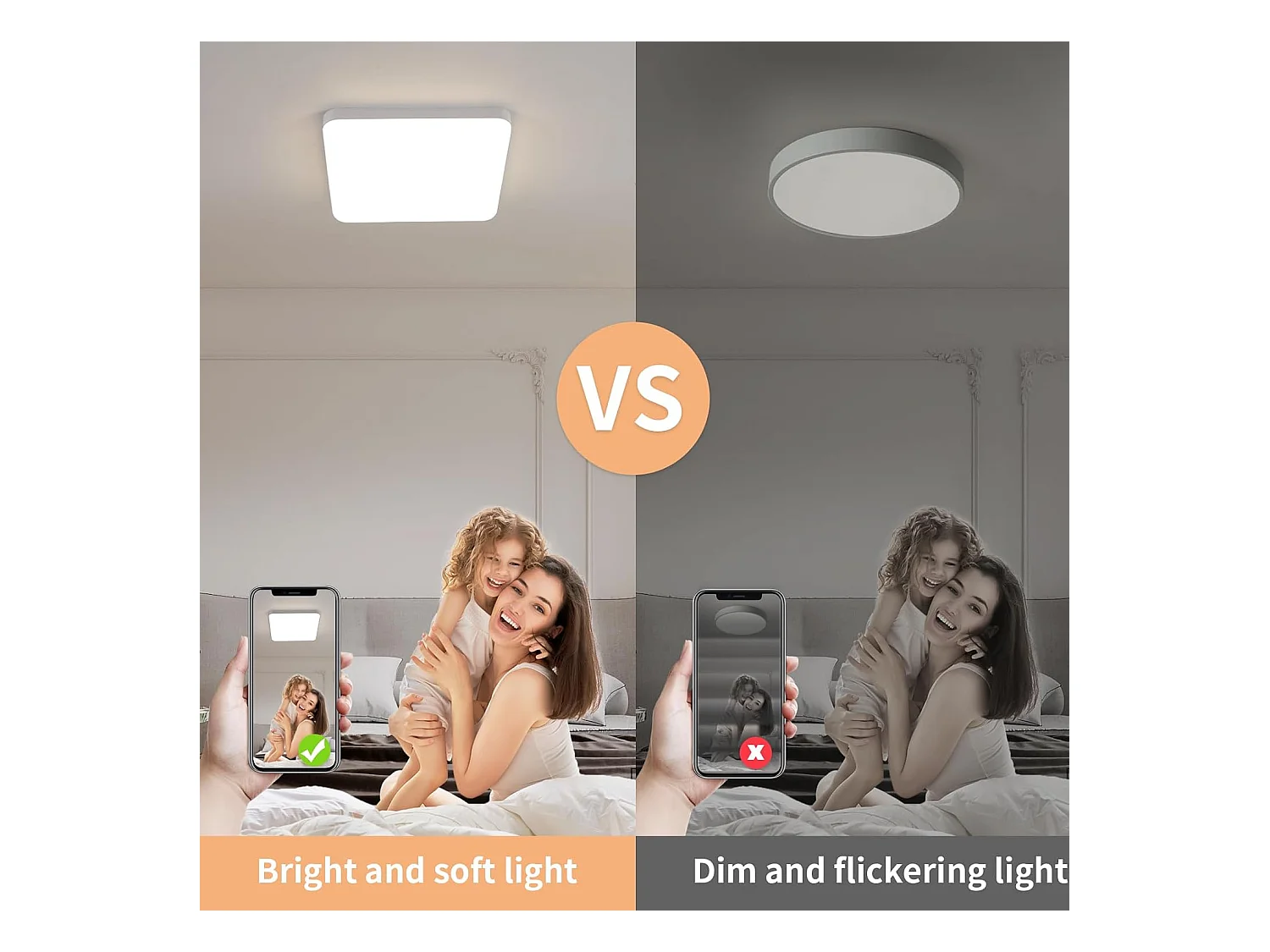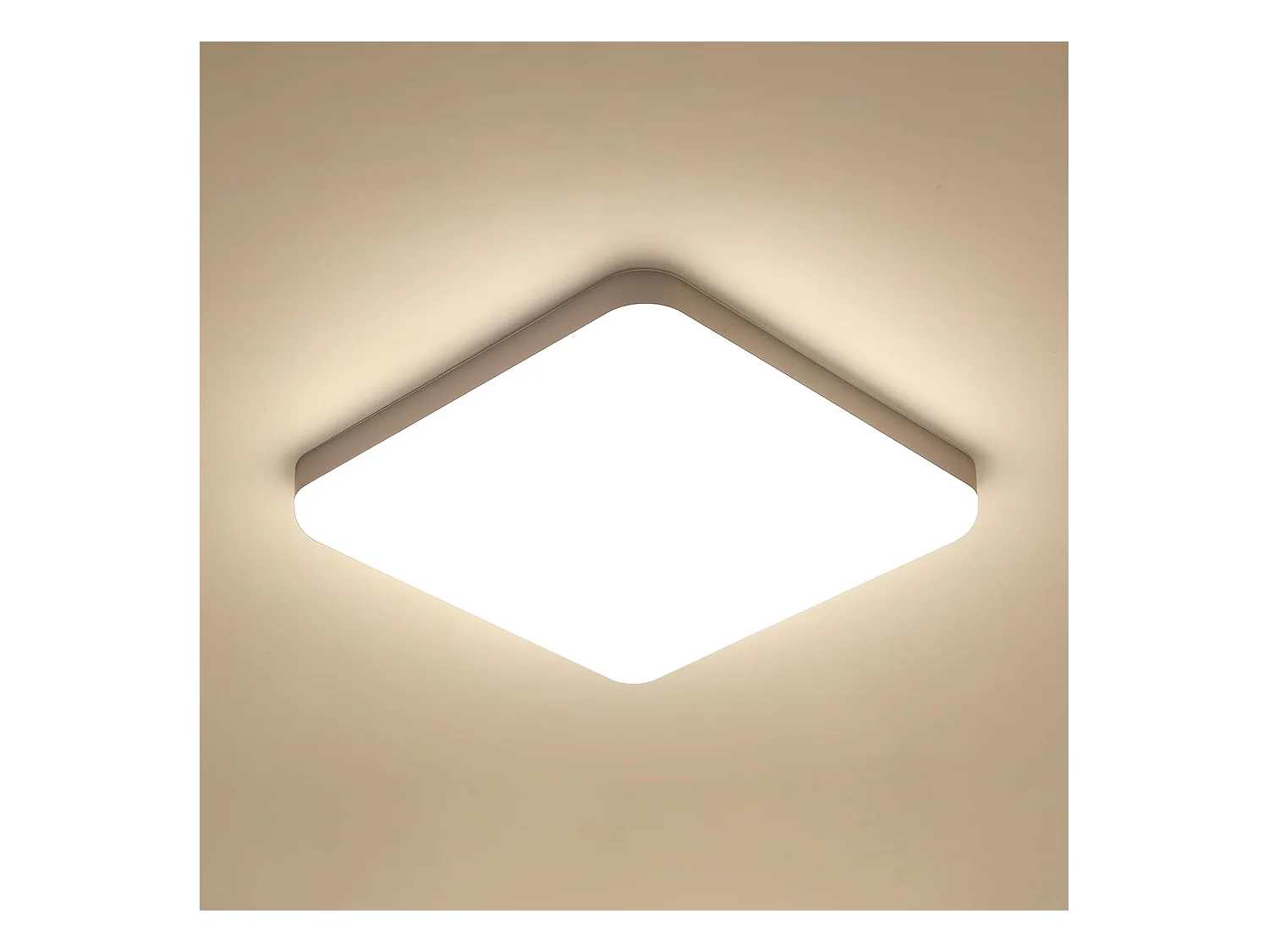 Plafonnier LED Carré Blanc, 3000K Lumière Blanche Chaude 32W, PVC Imperméable IP44, Idéal pour Salle de Bain Chambre Balcon