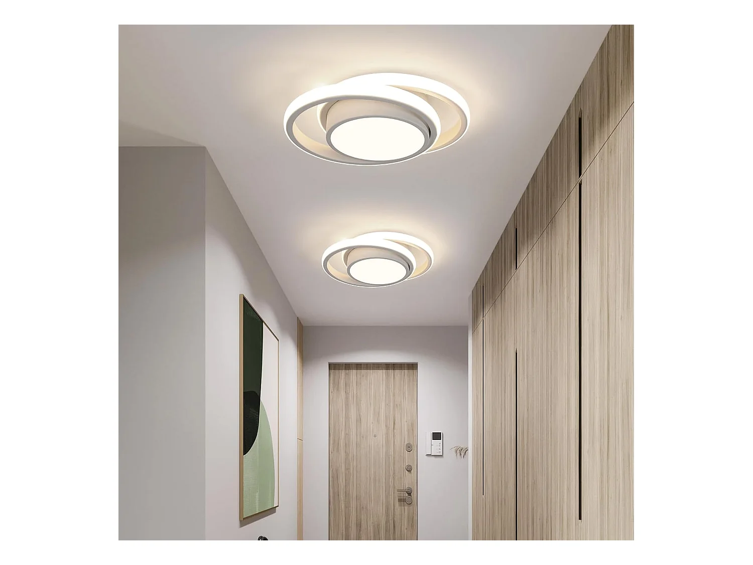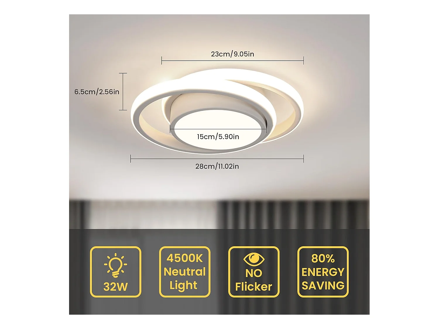 Plafonnier LED Moderne, 2 Ronds Blancs, en Aluminium, 32W 5000K Lumière Blanche Neutre, Châssis 15CM, pour Salon Chambre