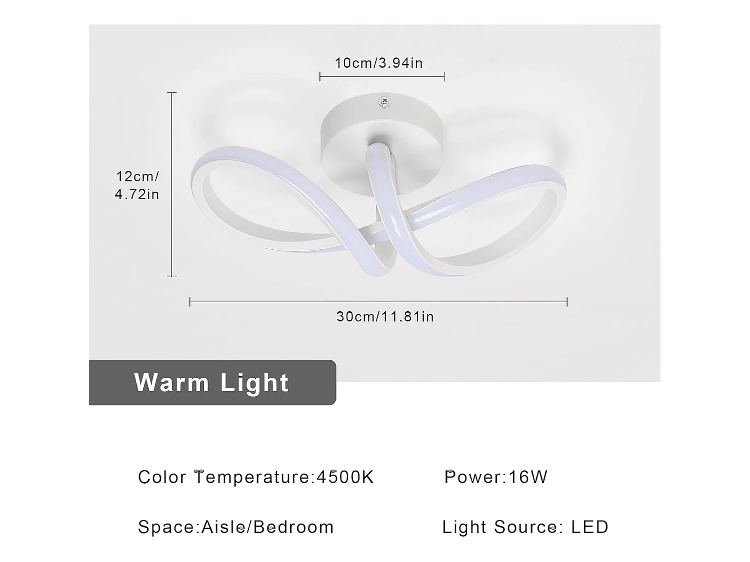 Plafonnier LED Moderne, 20W Plafonnier LED Courbé en Forme de 8, Lustre de Plafond LED 4500K pour Chambre Salon Salle à Manger (Lumière Neutre)