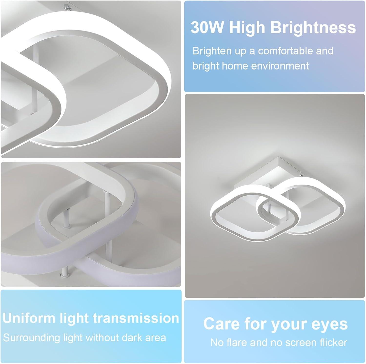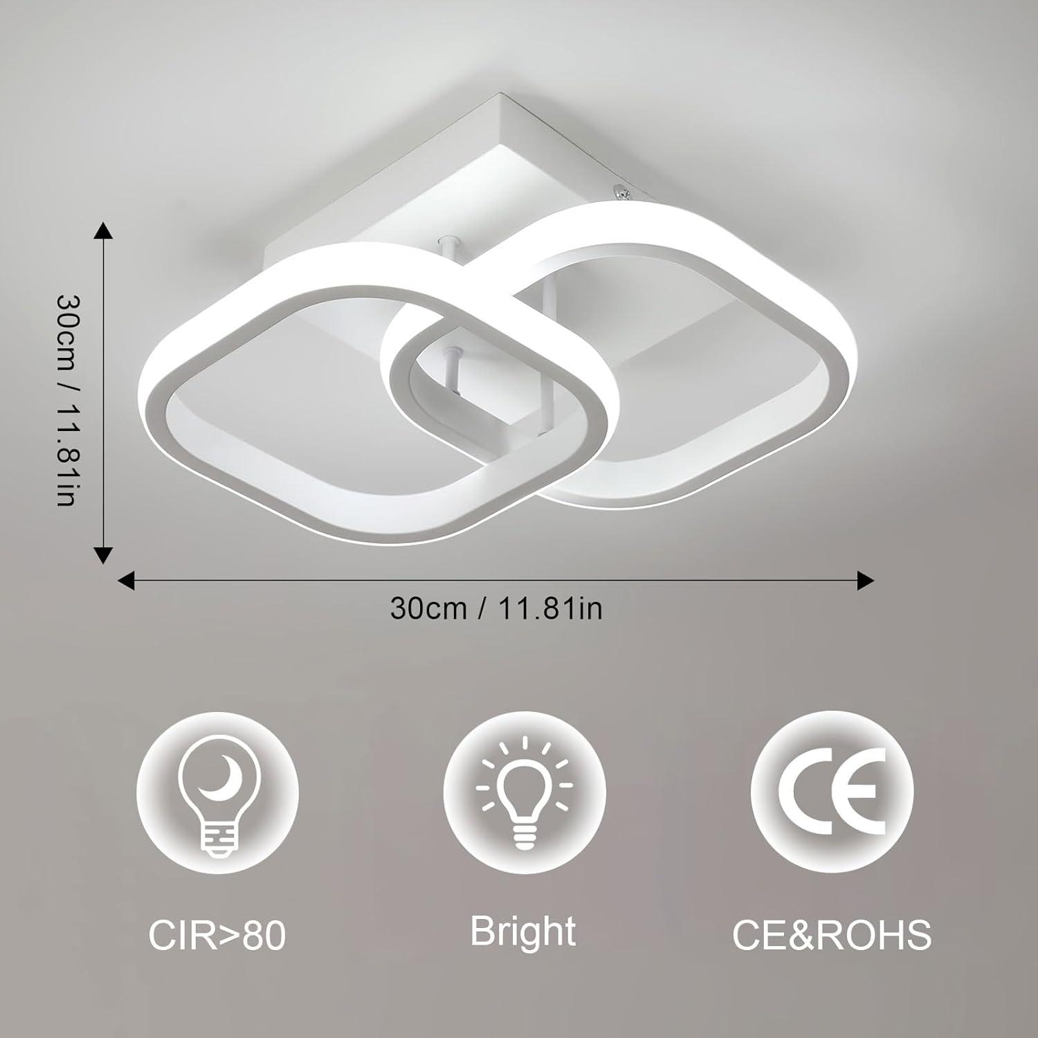 Plafonnier LED Carré Design Simple en Acrylique Blanc Idéal pour Chambre Salon Couloir(30W 6500K Lumière Blanche Froide)