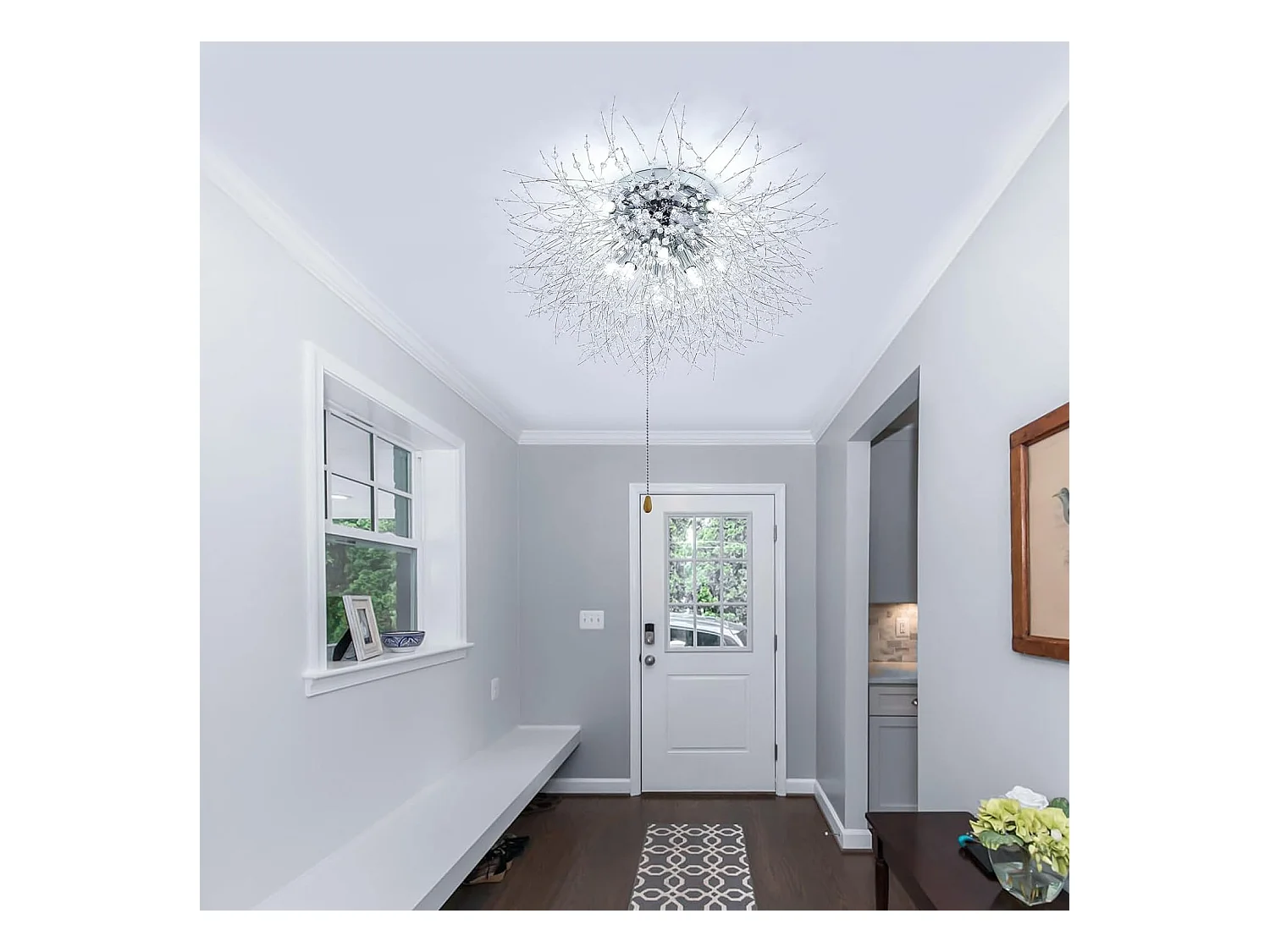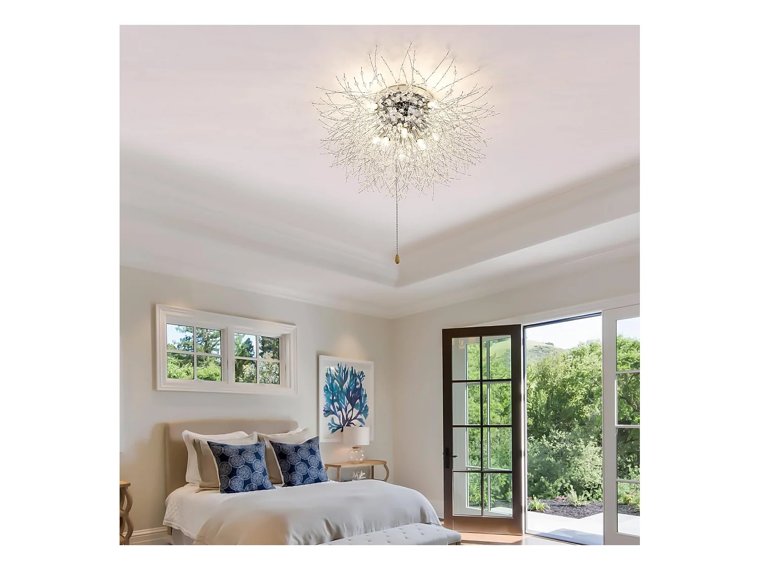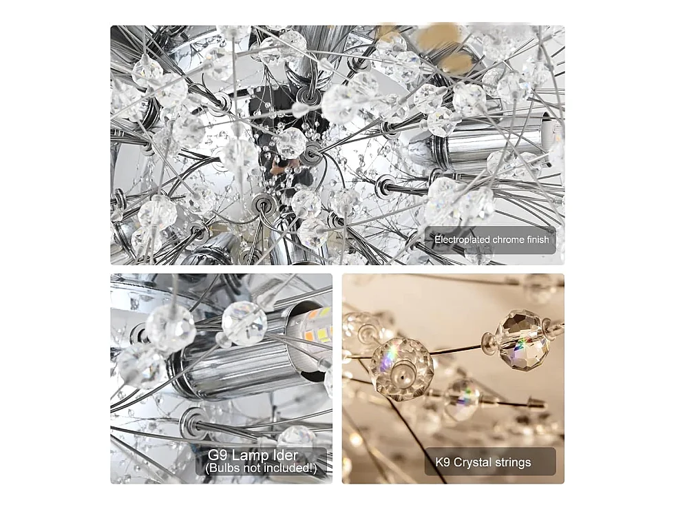 Plafonnier led moderne - argenté - 70*38cm - en k9 cristal - 8 lumière - interrupteur à cordon
