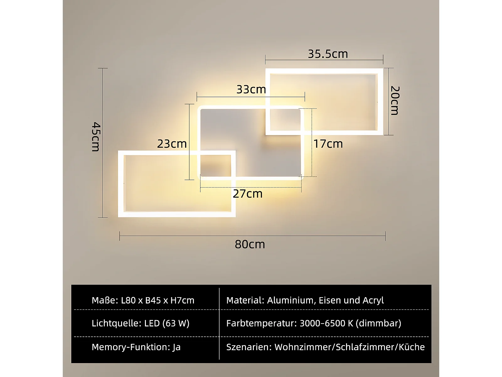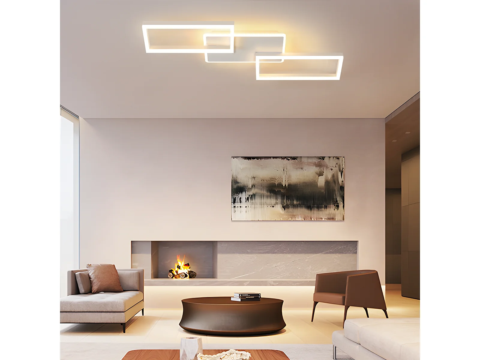 Plafonnier LED NETTLIFE pour salon - Plafonnier à intensité variable avec télécommande 63 W - Grand format - Blanc moderne
