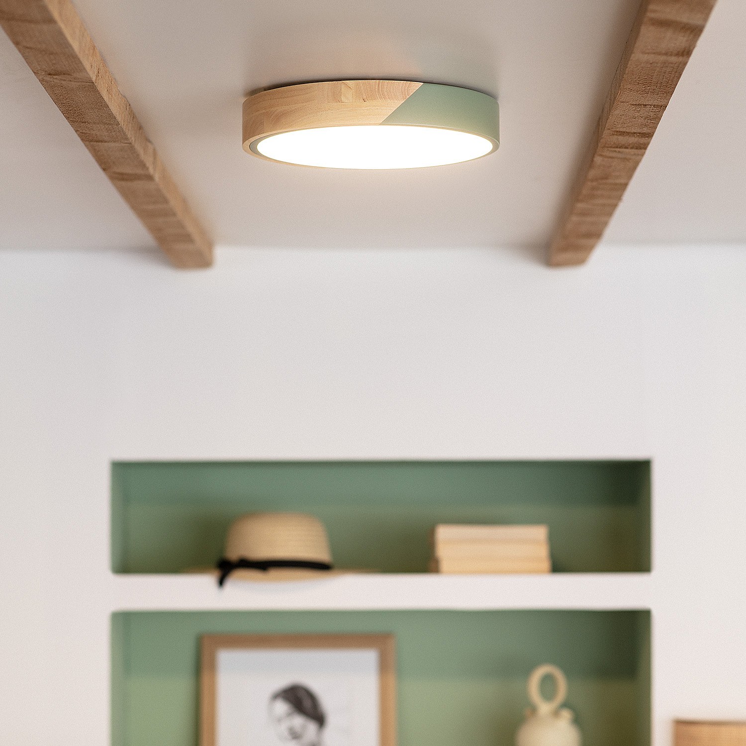 Plafonnier LED Rond Bois 18W CCT Sélectionnable Semi-Dari Ø320 mm Vert