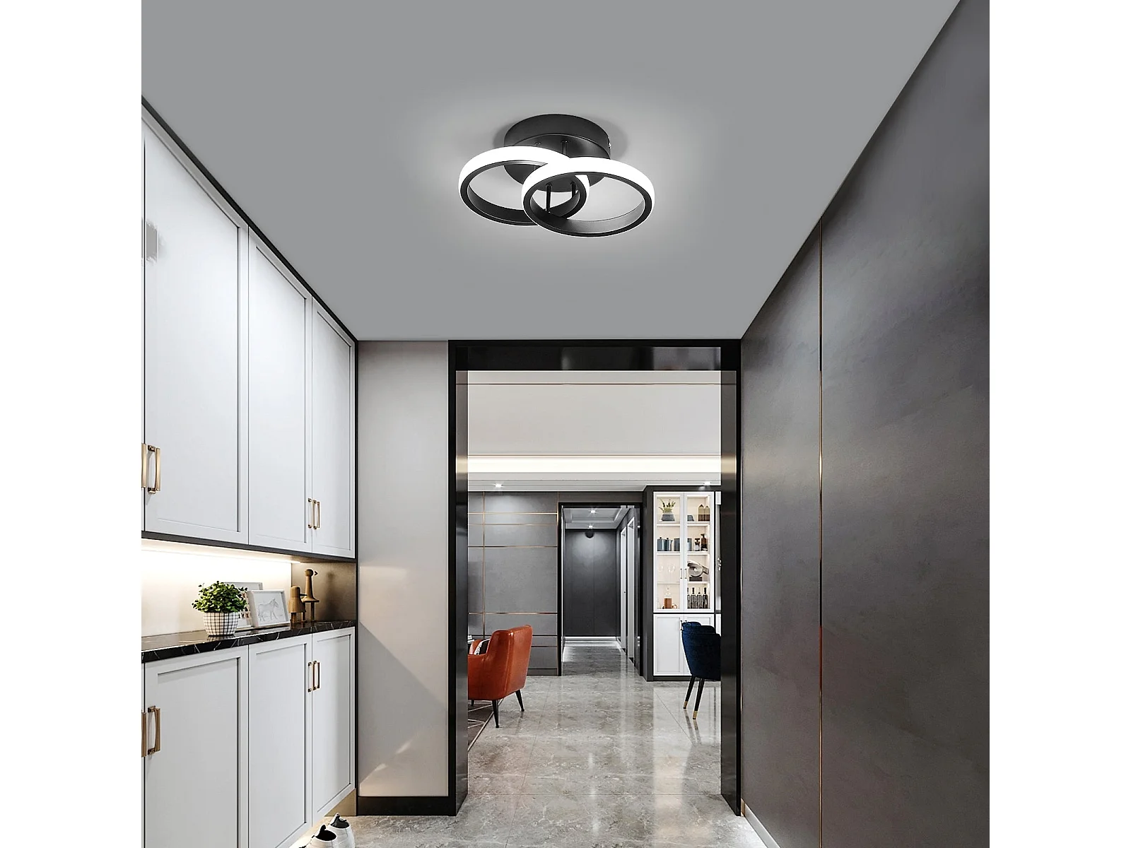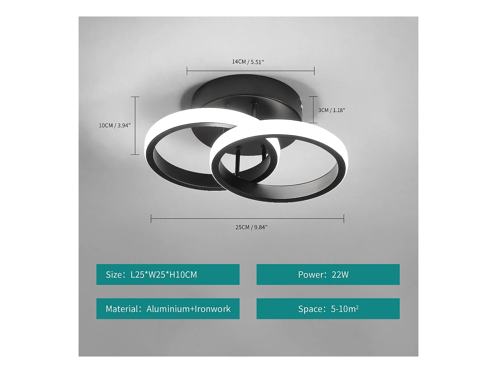 Plafonnier LED rond croisés, noir, 25*17*9cm, 22W, en acrylique, lumière blanc froid