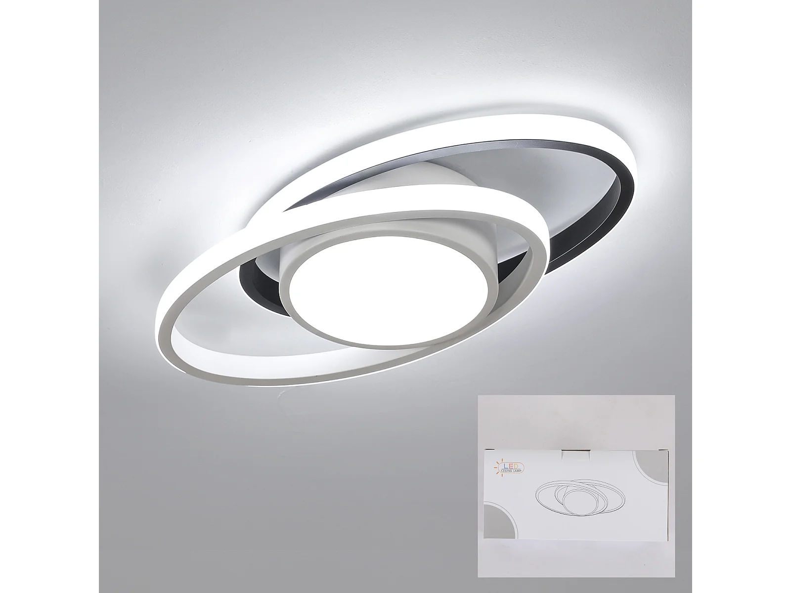 Plafonnier LED rond double en aluminium, noir à l'intérieur et blanc à l'extérieur, forme ovale, lumière blanche 39W, pour salon/chambre/cuisine