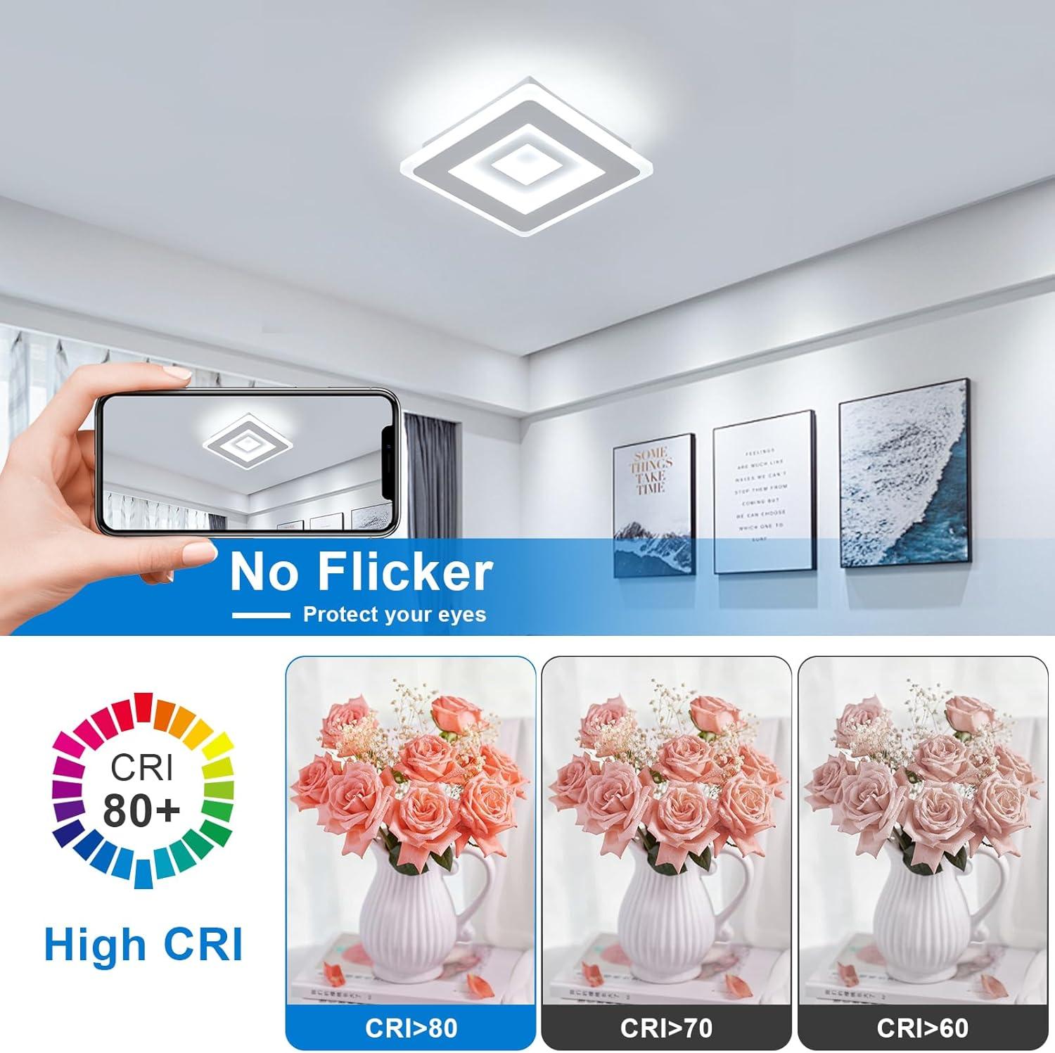 Plafonniers carrés 22W,Plafonniers LED, Lampe de Plafond 3500K pour Salle de Bain, Salon, Chambre, Cuisine, Couloir (Blanc Chaud)