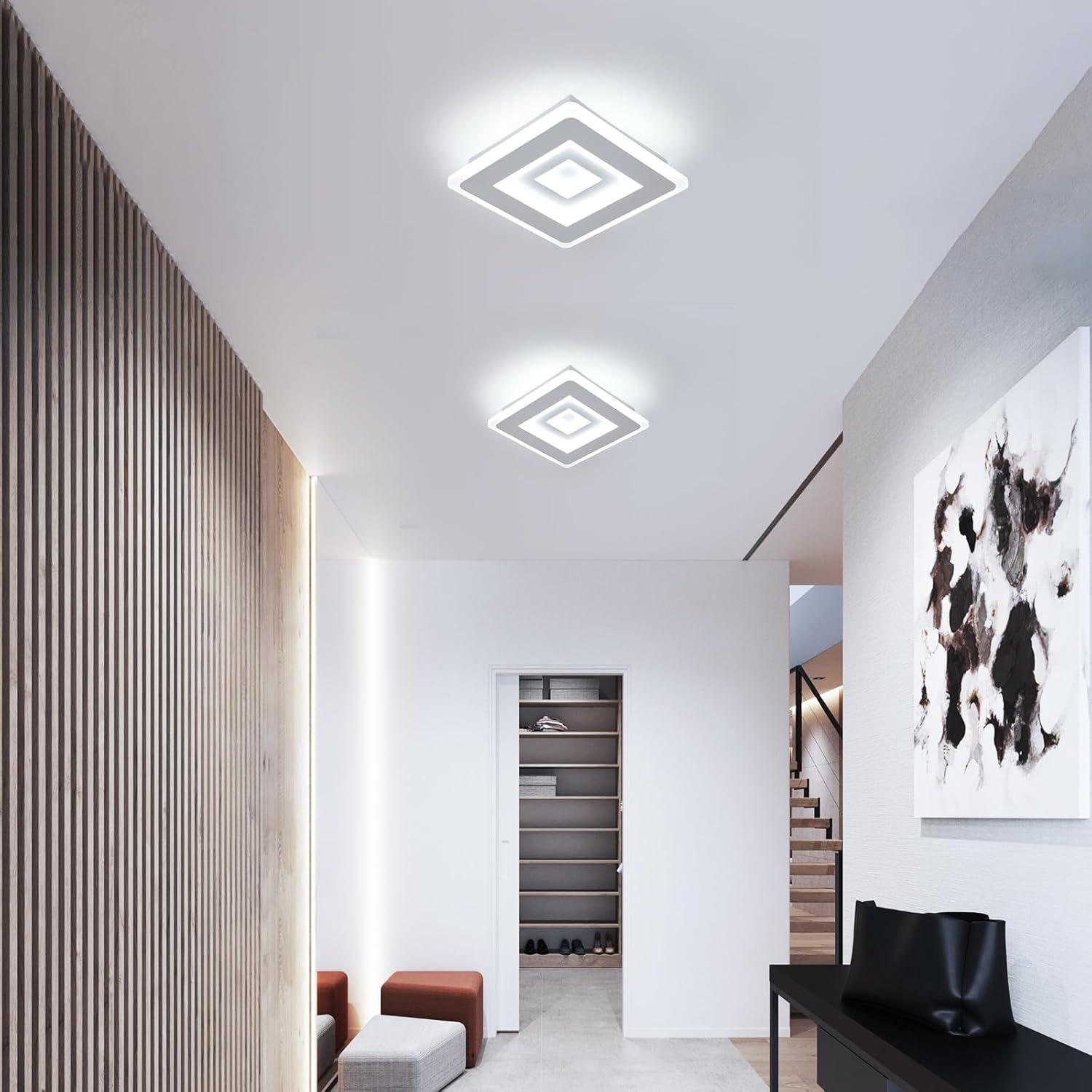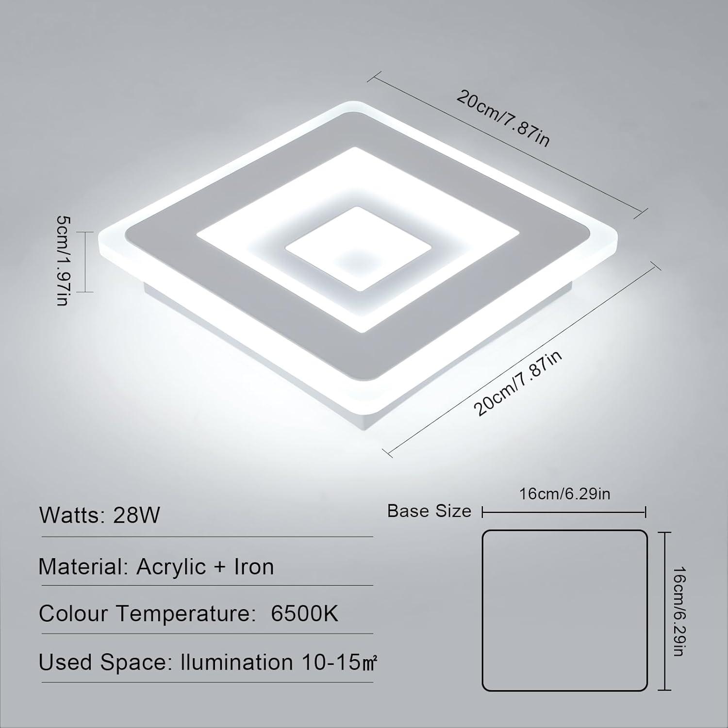 Plafonnier LED Carré Design Simple en Acrylique Blanc Idéal pour Chambre Salon Couloir(30W 6500K Lumière Blanche Froide)