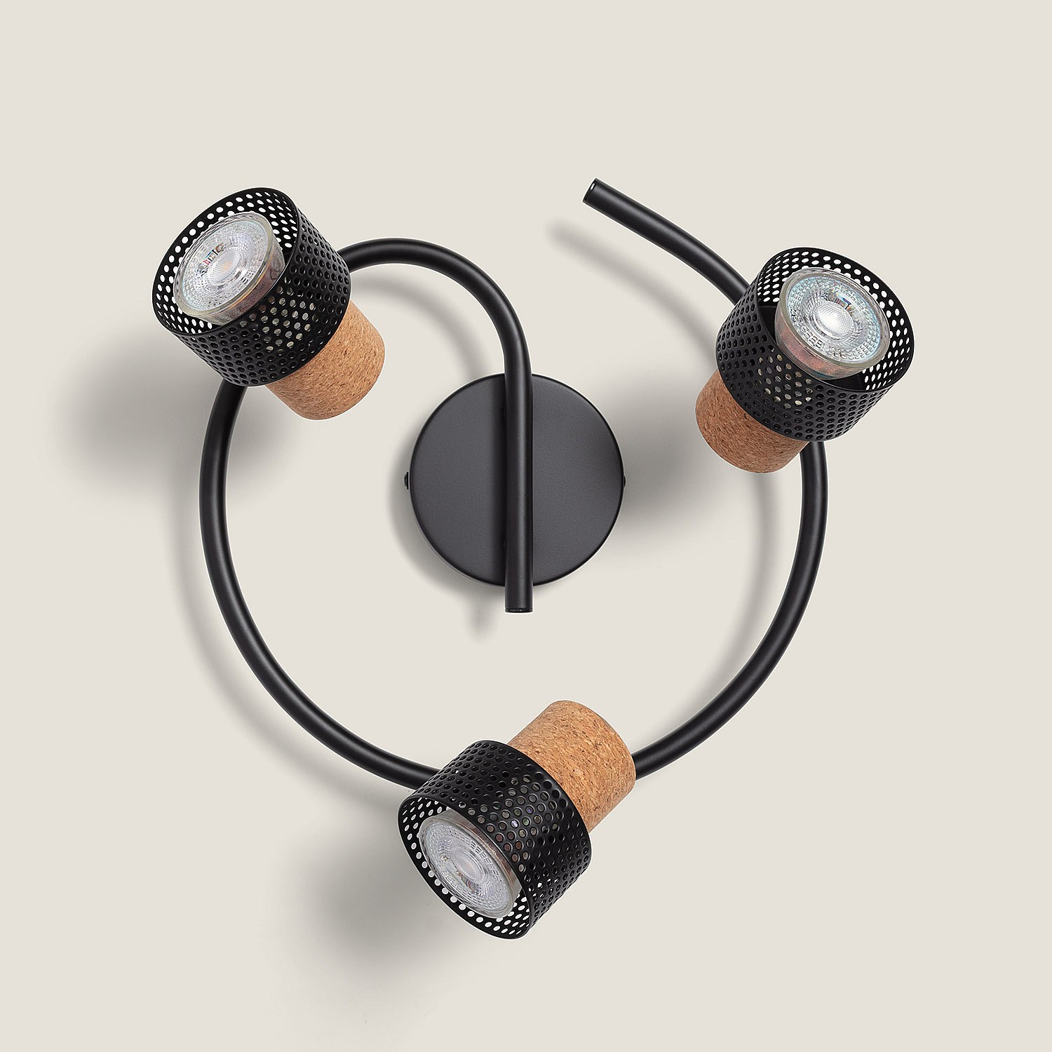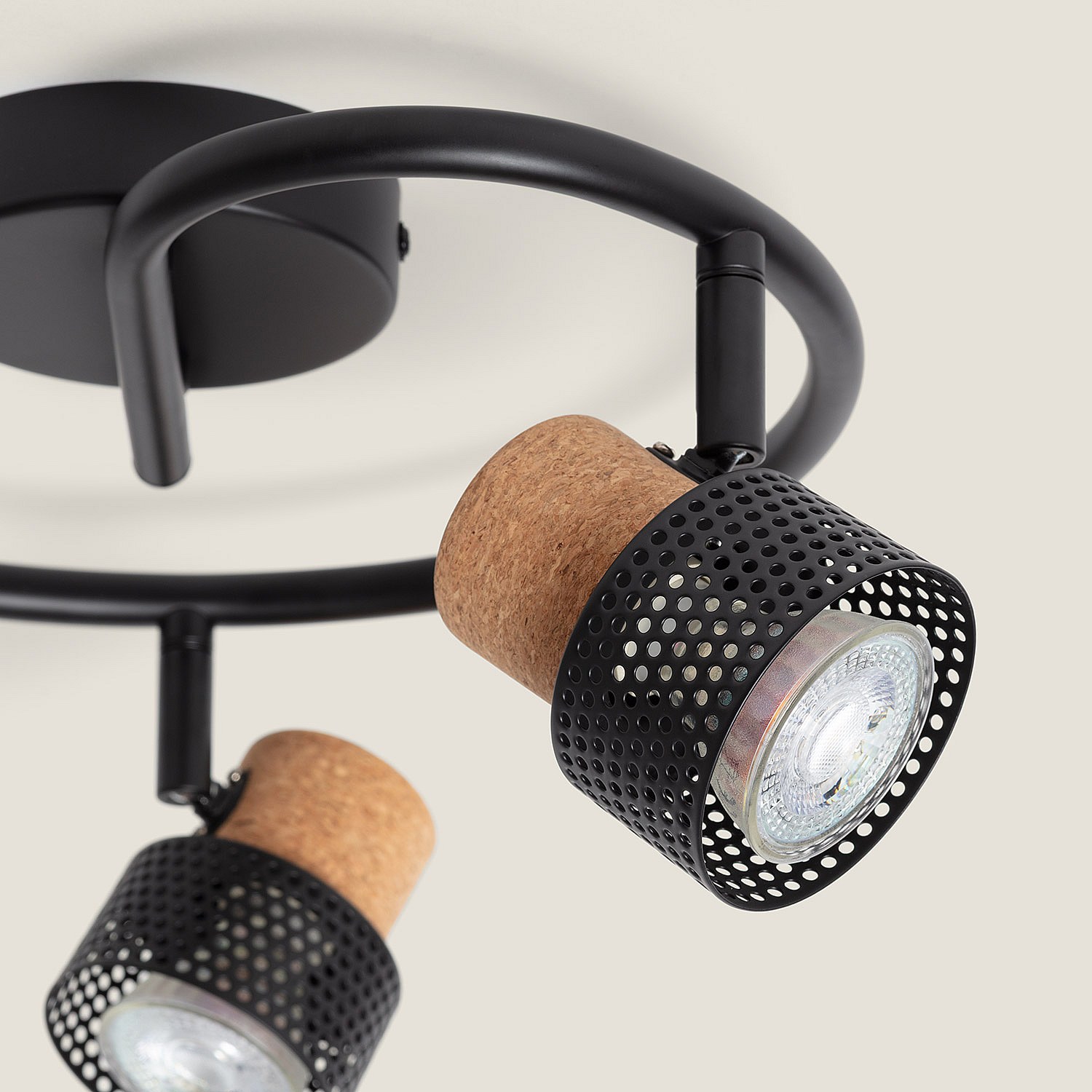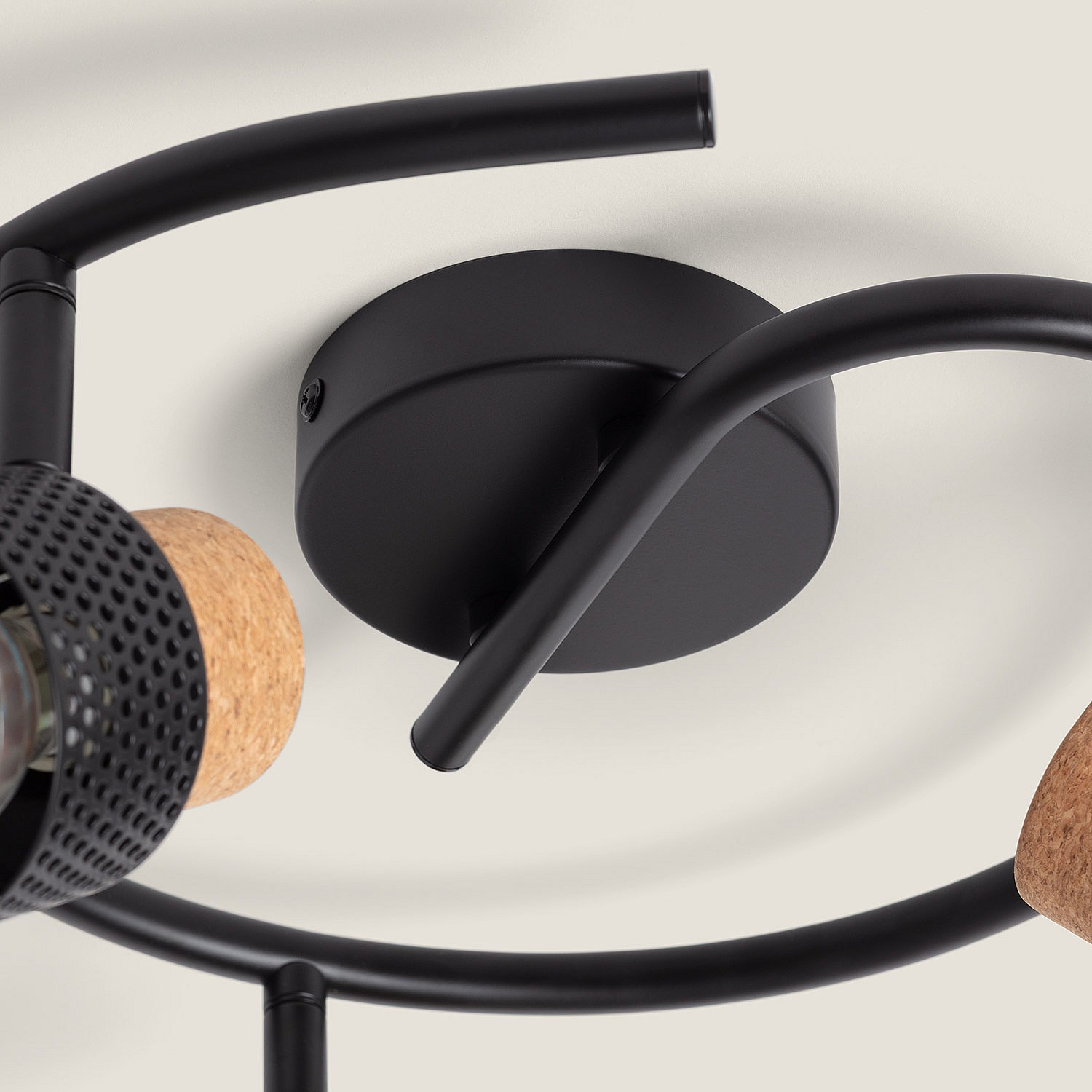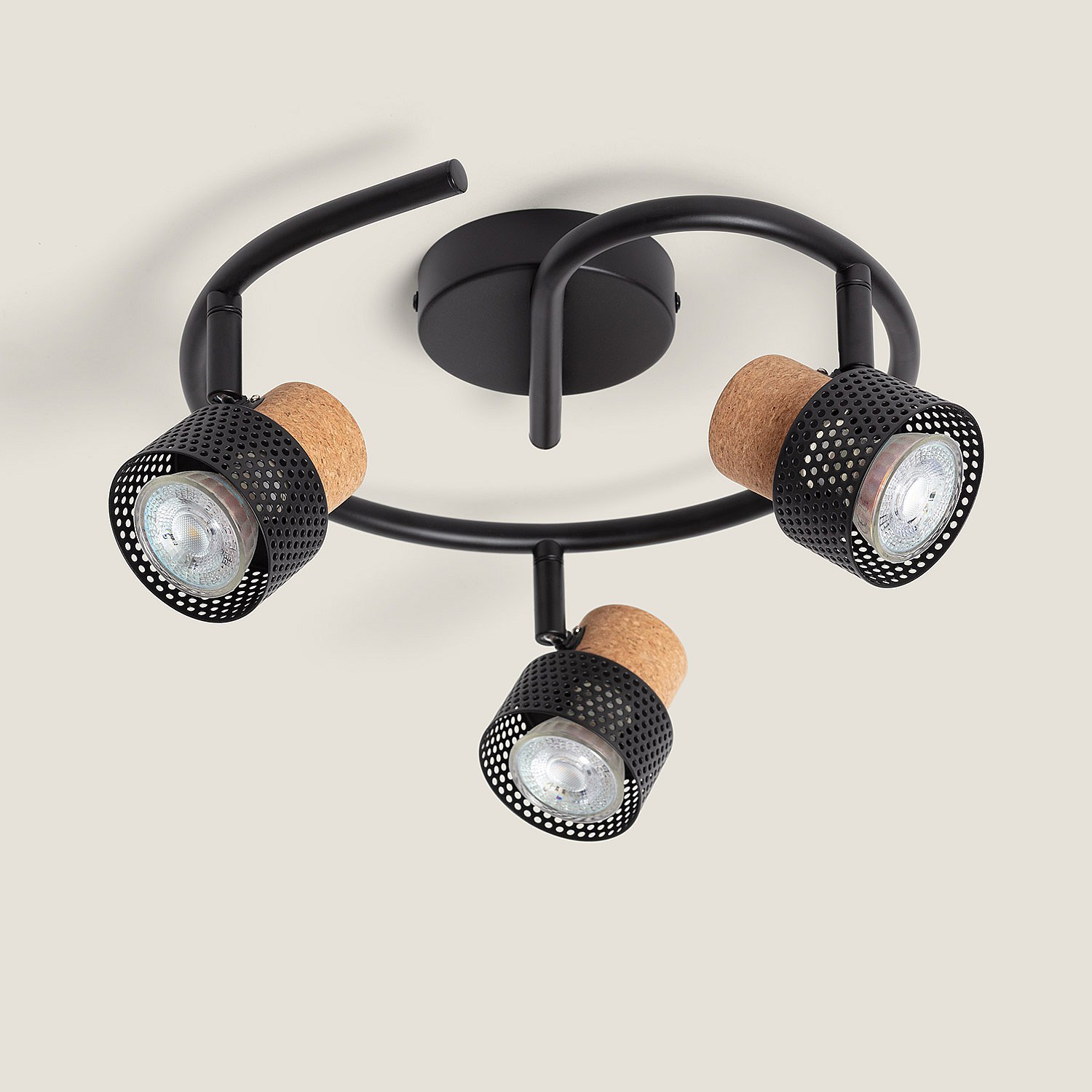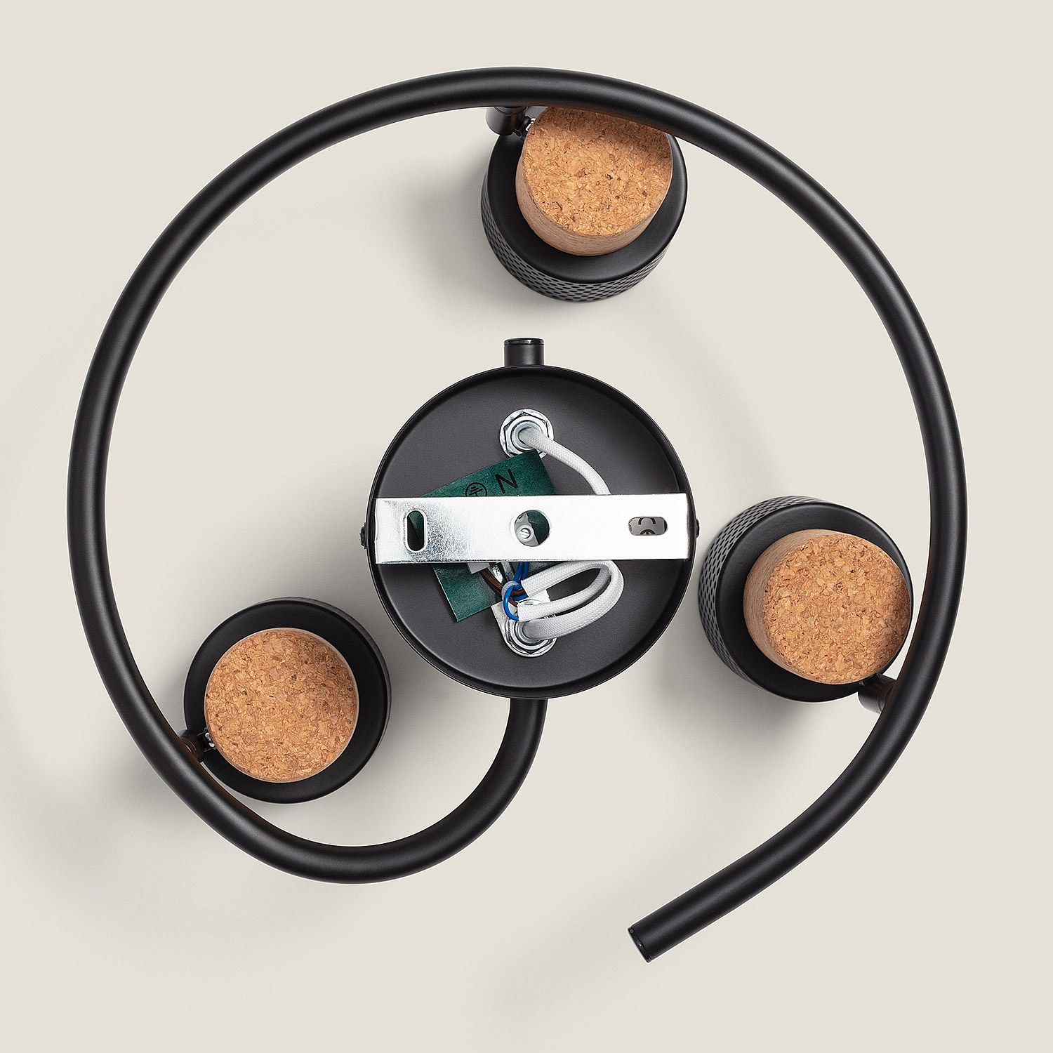 Plafonnier Métal et Liège Trois Spots Liksy Noir