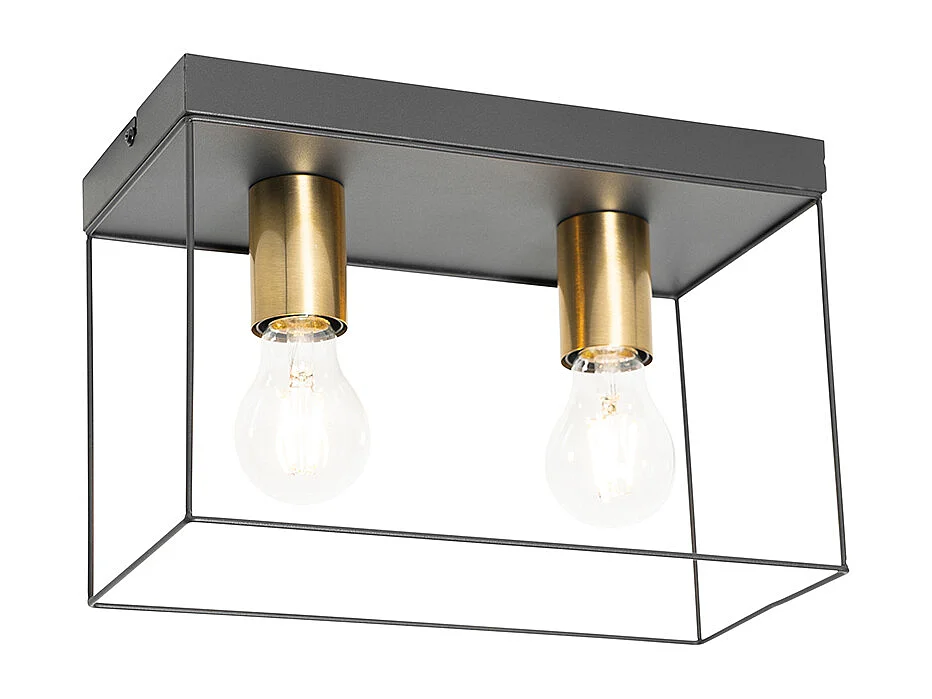 Plafonnier minimaliste noir avec or 2 lumières - Kodi