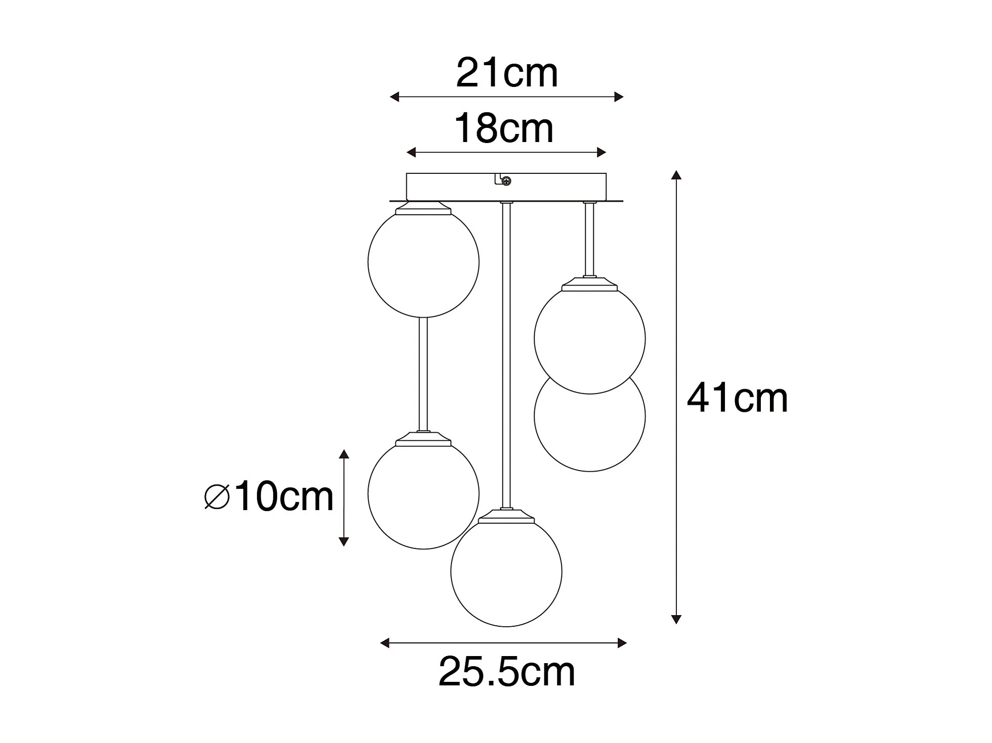 Plafonnier moderne doré avec verre opale 5 lumières - Athènes