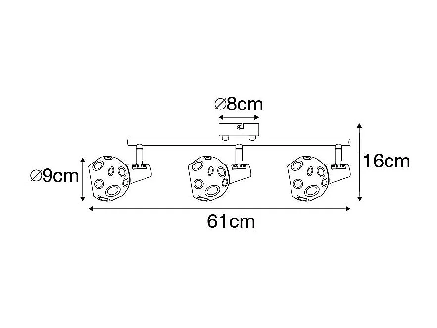 Plafonnier doré 56 cm avec verre fumé 3 lumières - Vidro