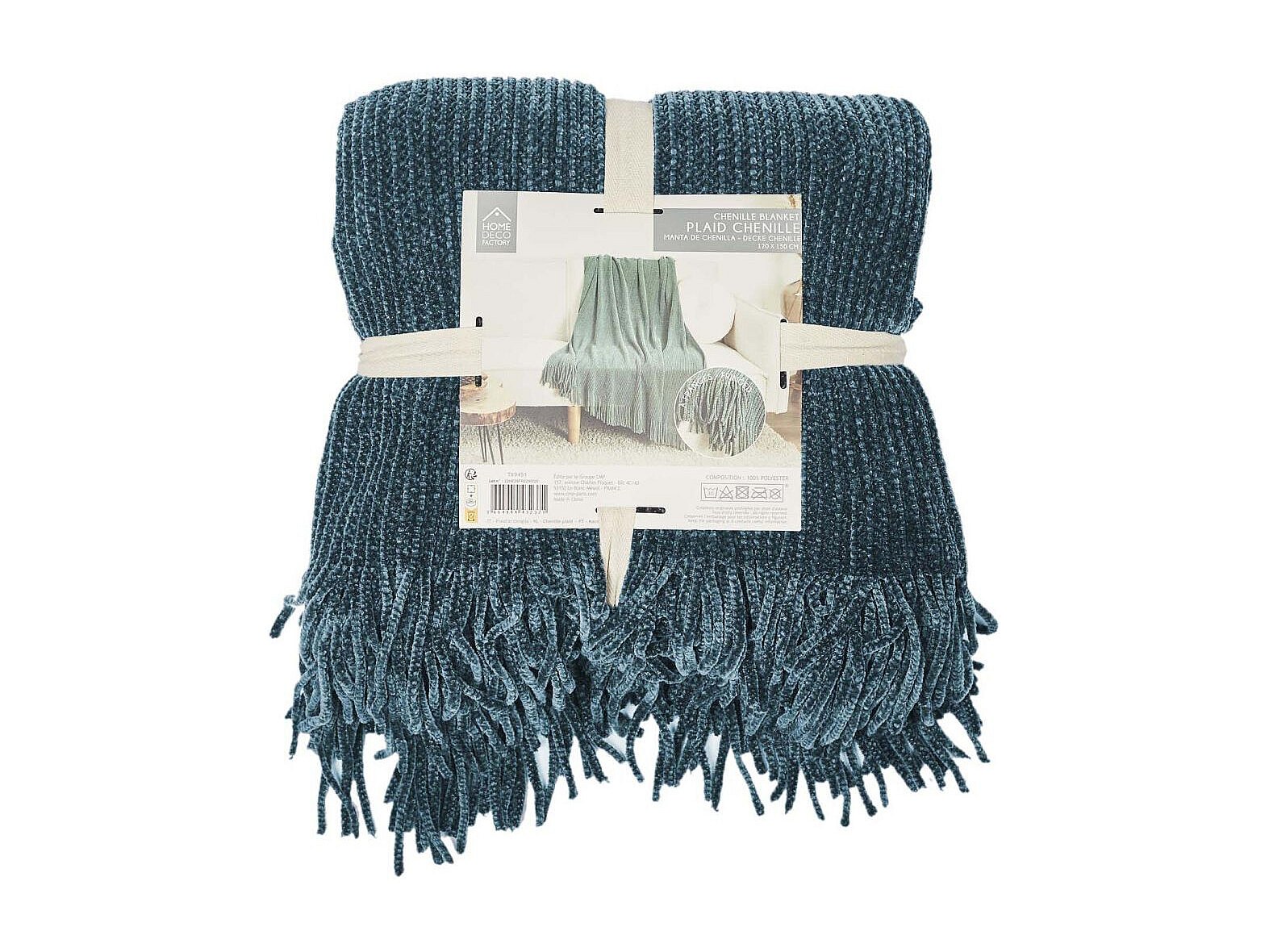 Plaid Chenille Frange Bleu Canard 120x150cm Bleu