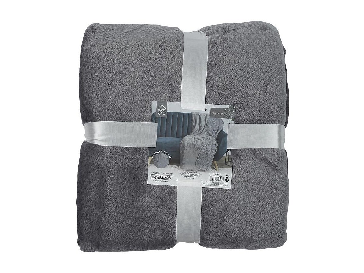 Plaid Flanelle Sherpa Gris Xxl 140x200cm Gris