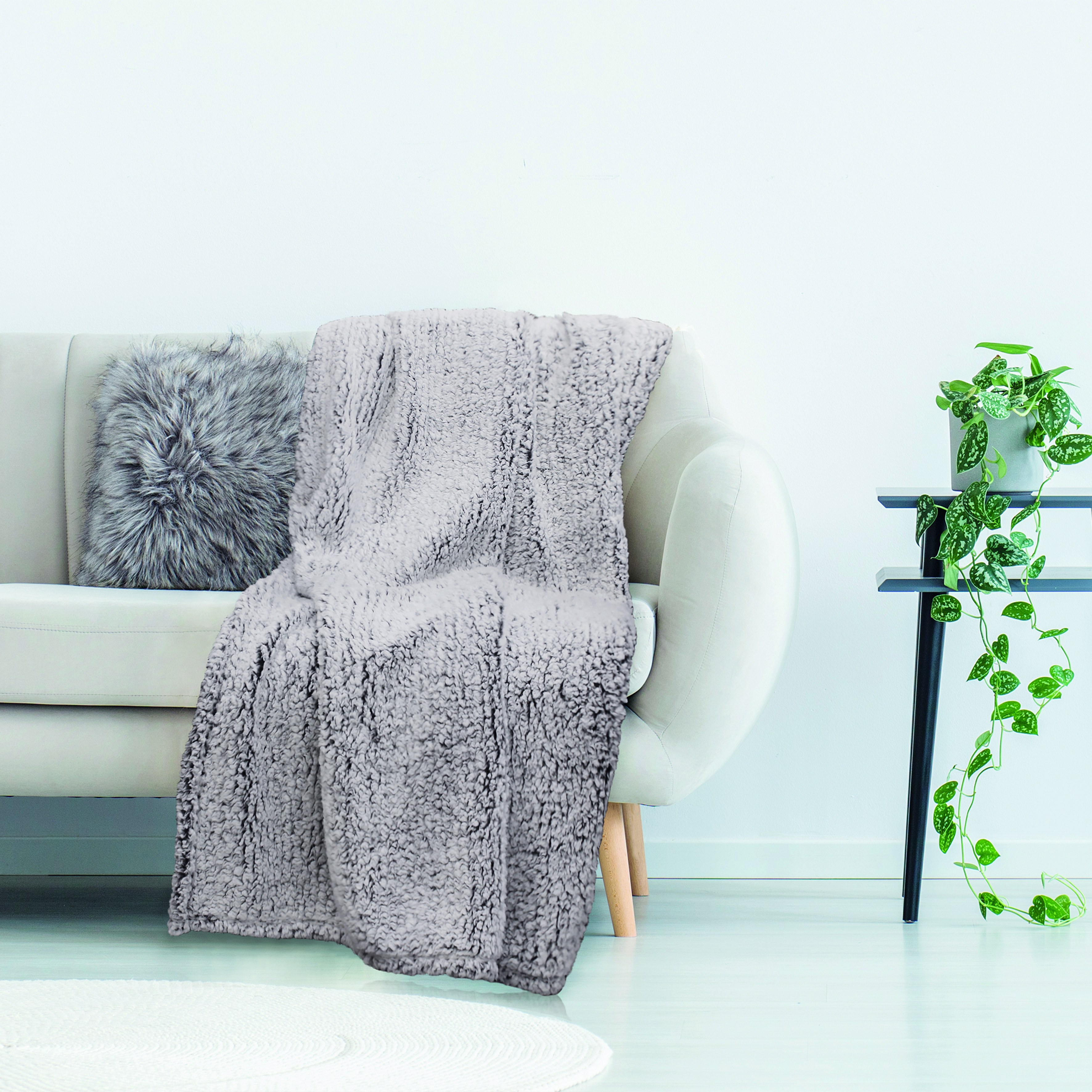 Couvre Lit Flanelle Sherpa Gris 220x240cm Gris