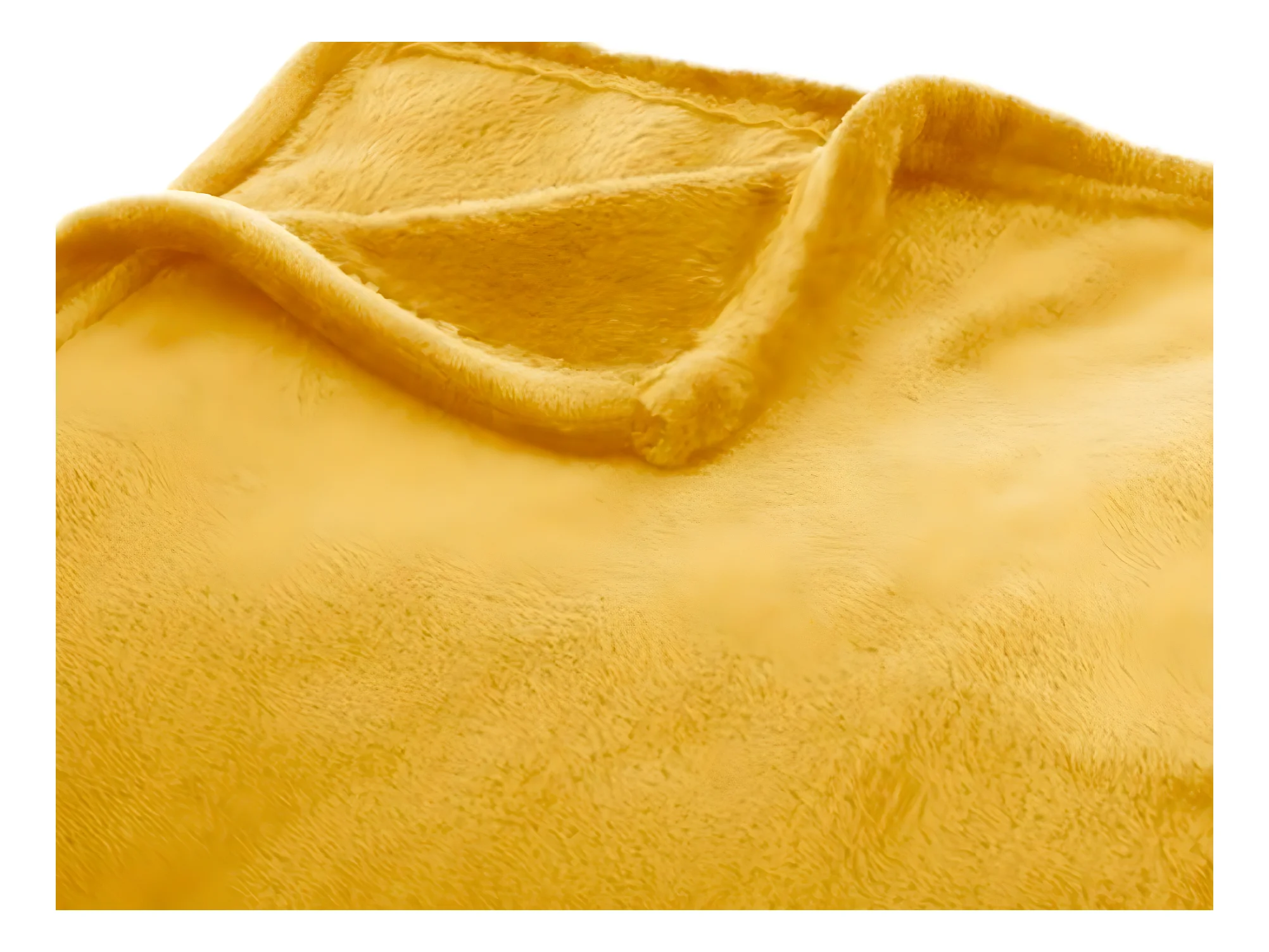 Plaid, couverture en microfibre coloris jaune ocre - L. 230 x P. 180 x H. 1 cm
