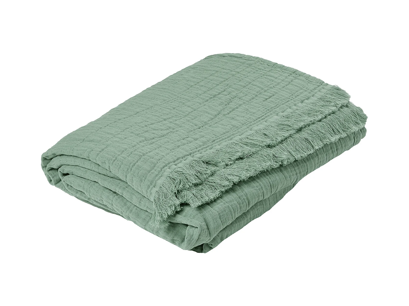 Plaid 180 x 220 cm en quadruple gaze de coton vert - PEPA 2