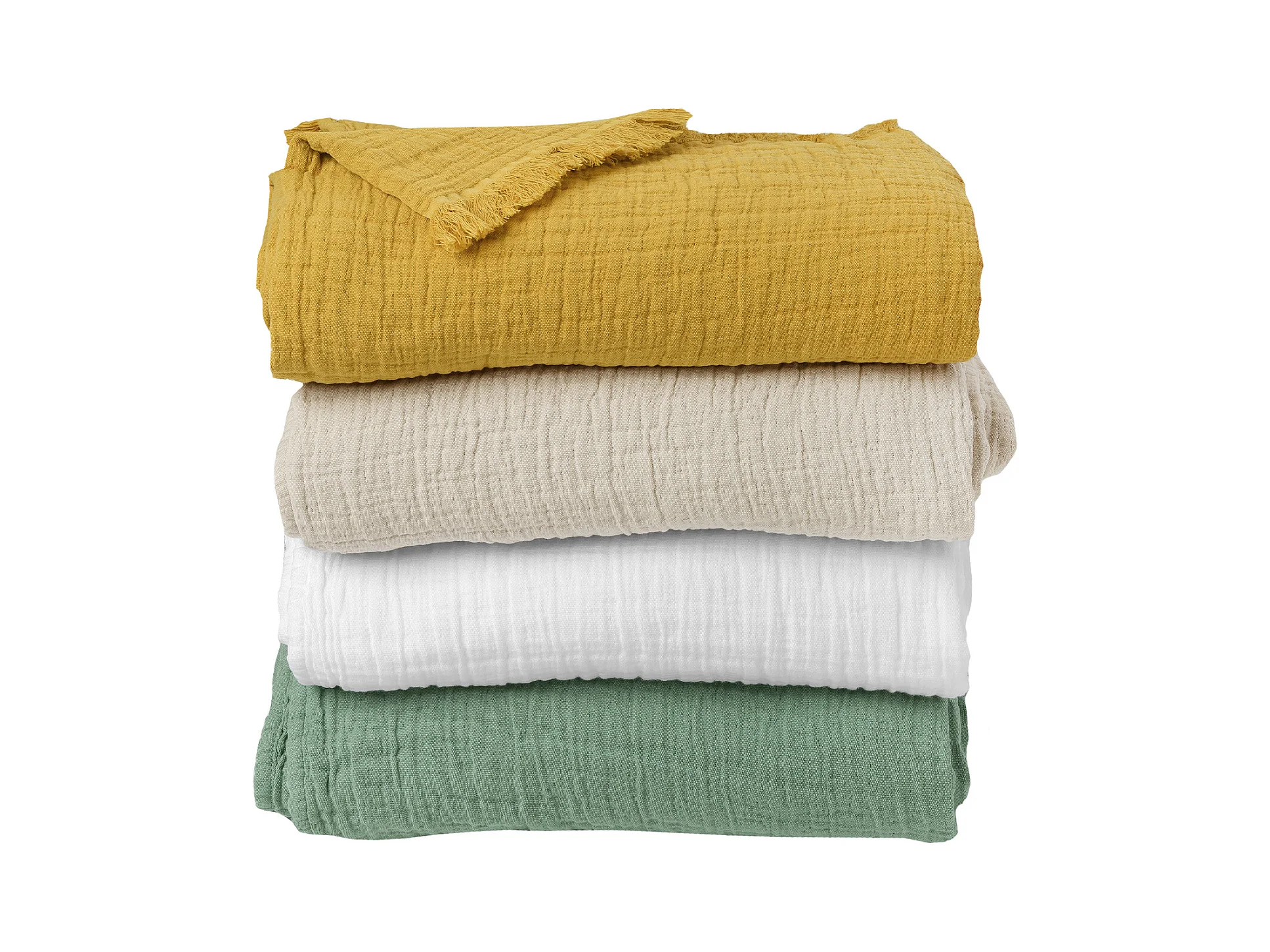 Couvre lit à franges "Brehat" Gaze de Coton stonewashed Toison d'or