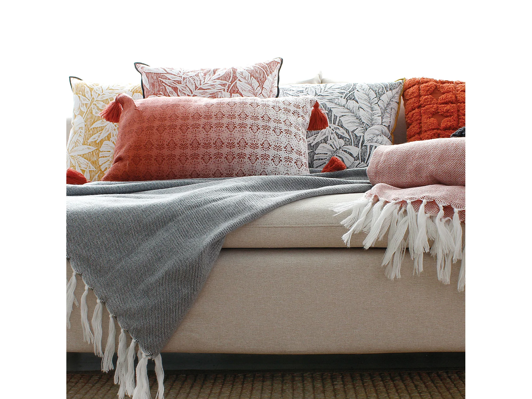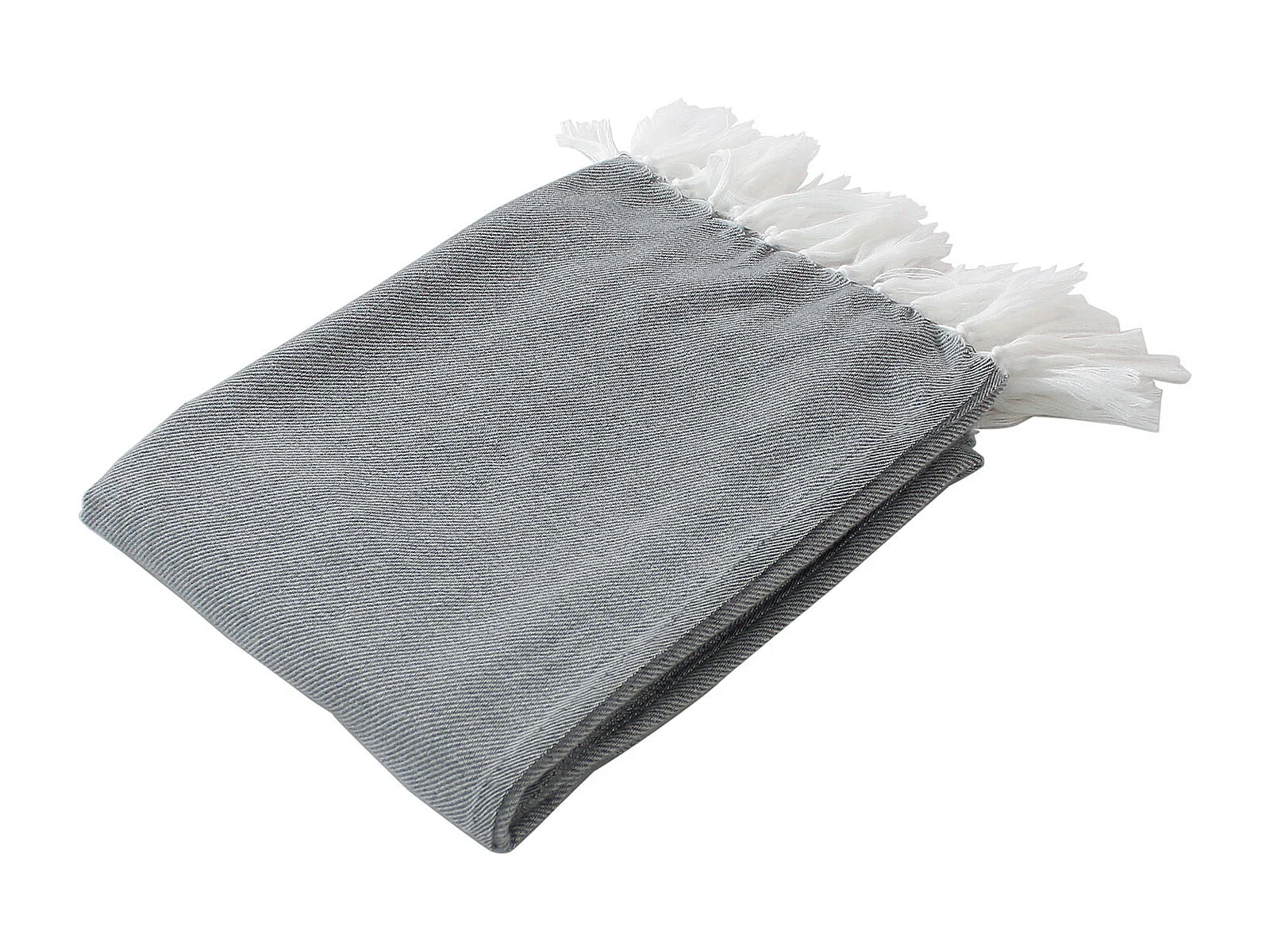 Plaid Uni à Franges "Dobby" 130x150cm Gris Clair