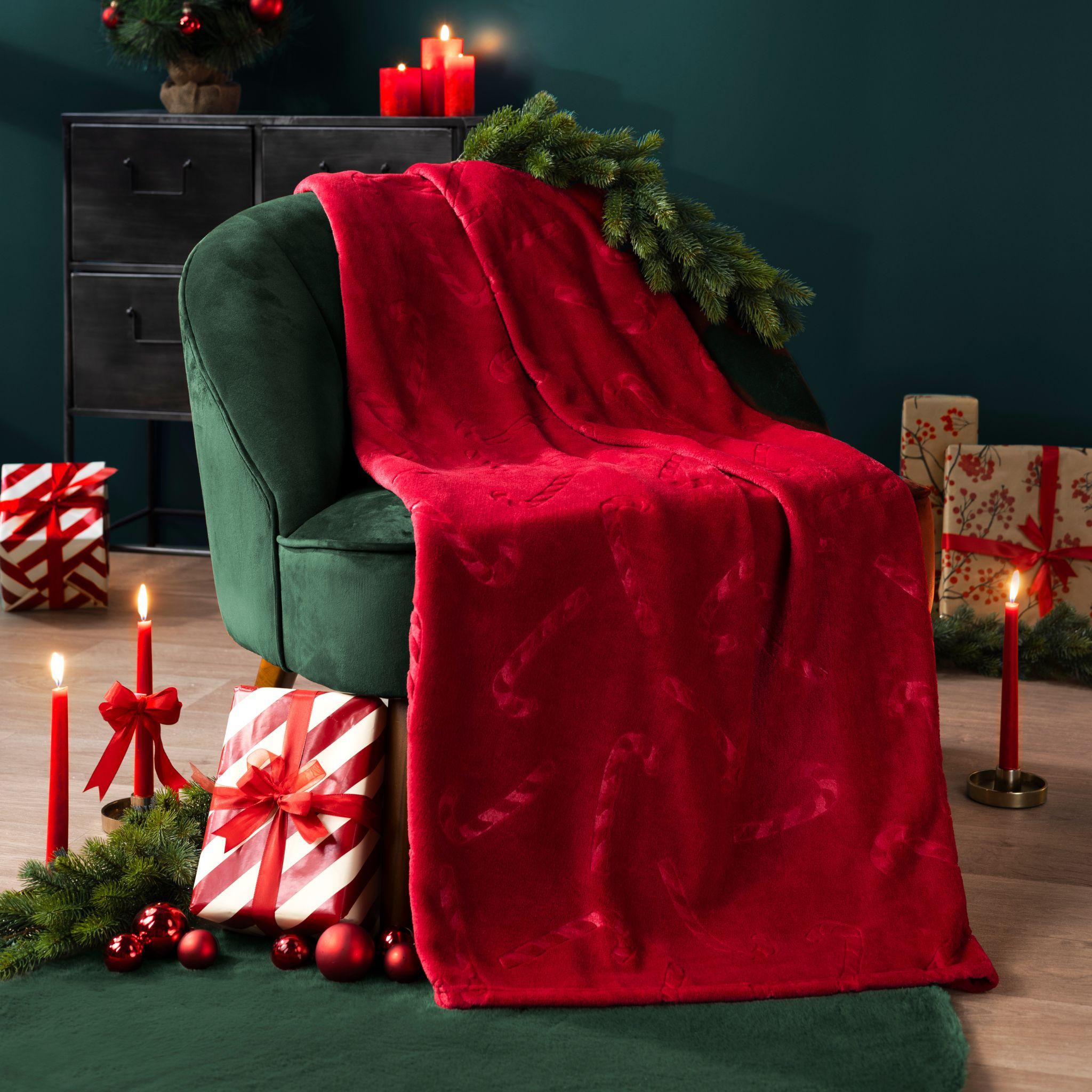 Plaid polaire chaud rouge 130x170 Sucre d'orge