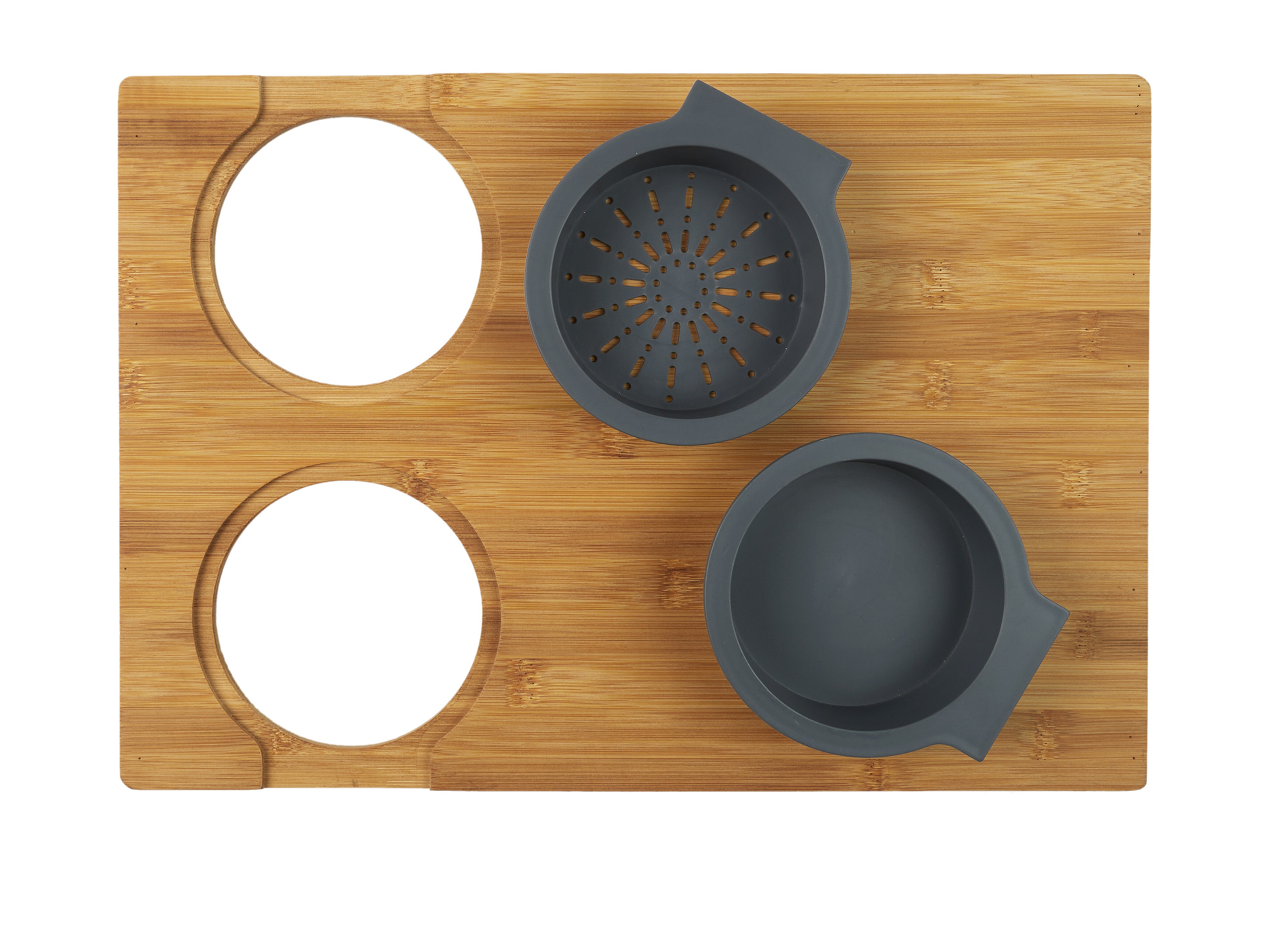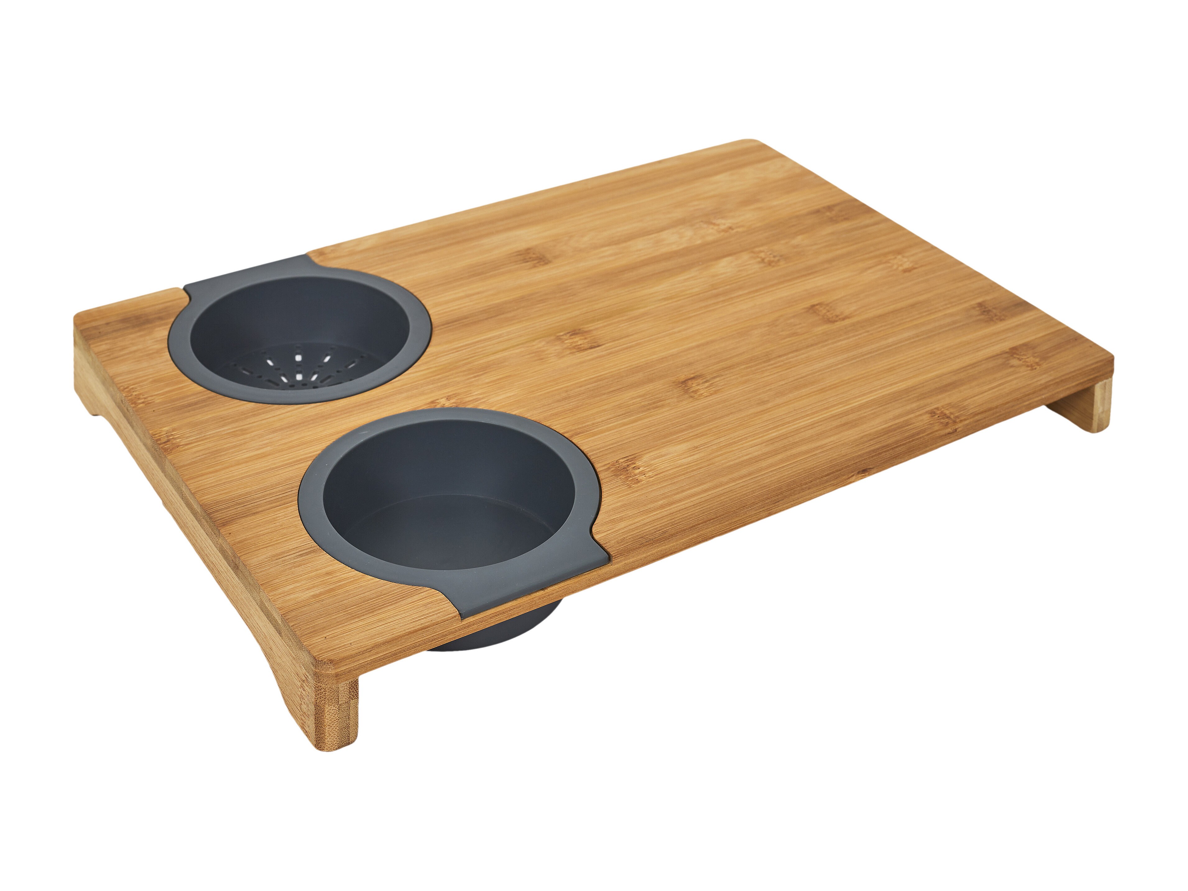 Planche A Decouper Bambou Passoire Integree Marron, Gris
