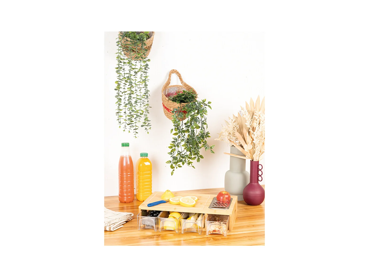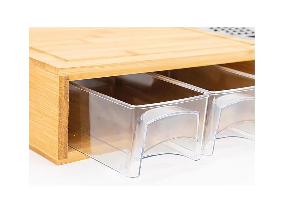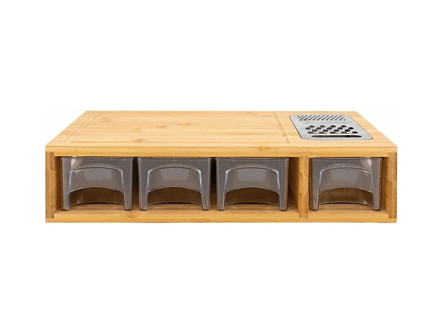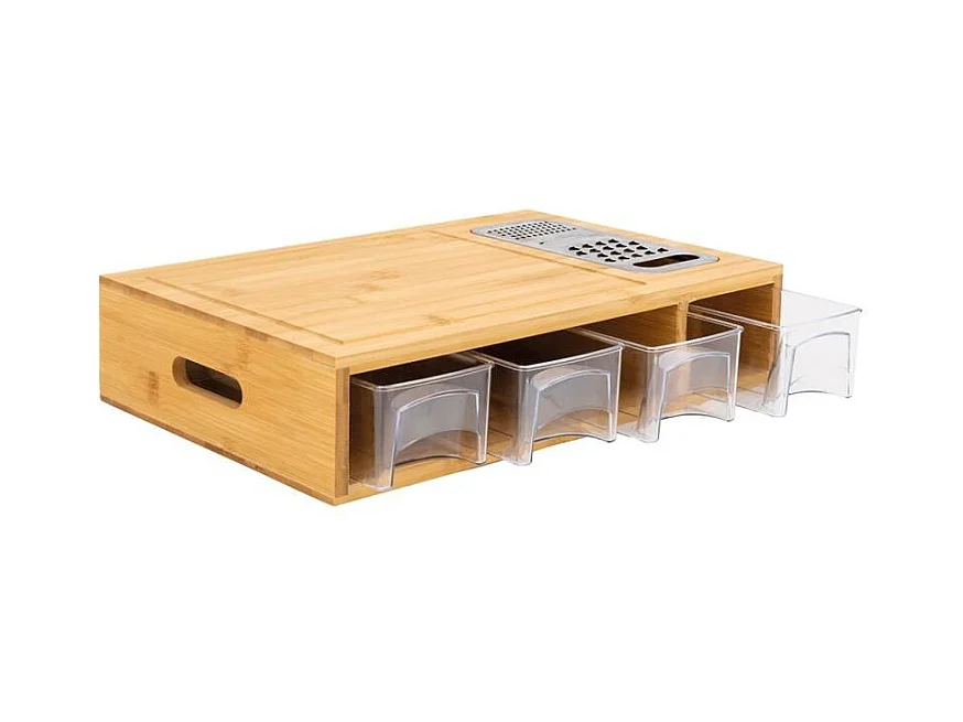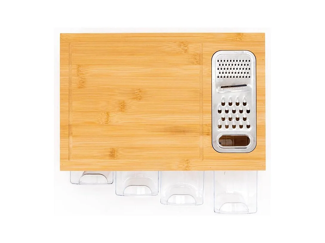 Planche à découper en bambou 4 récipients et rappe intégrée