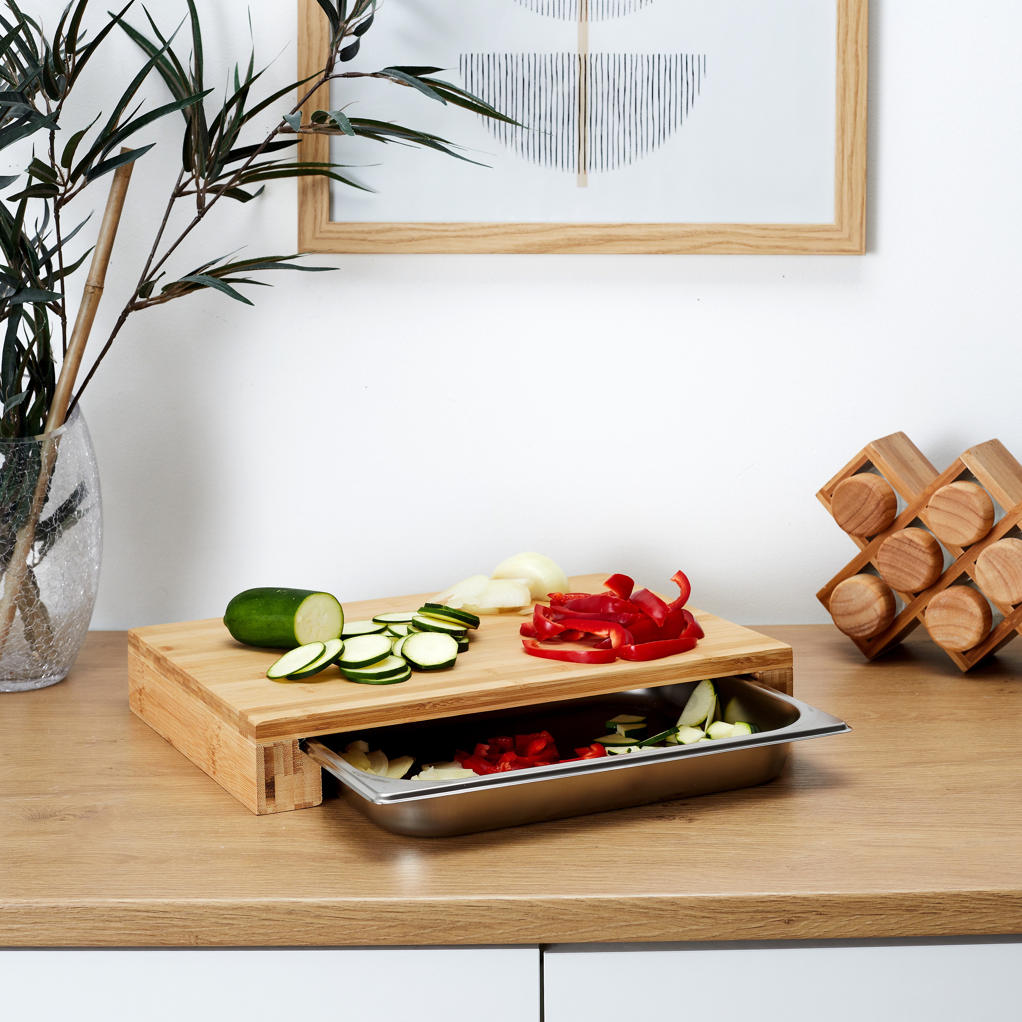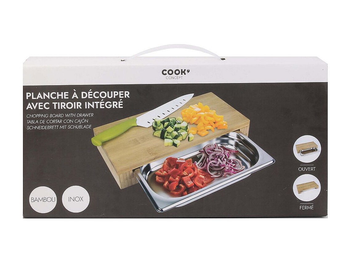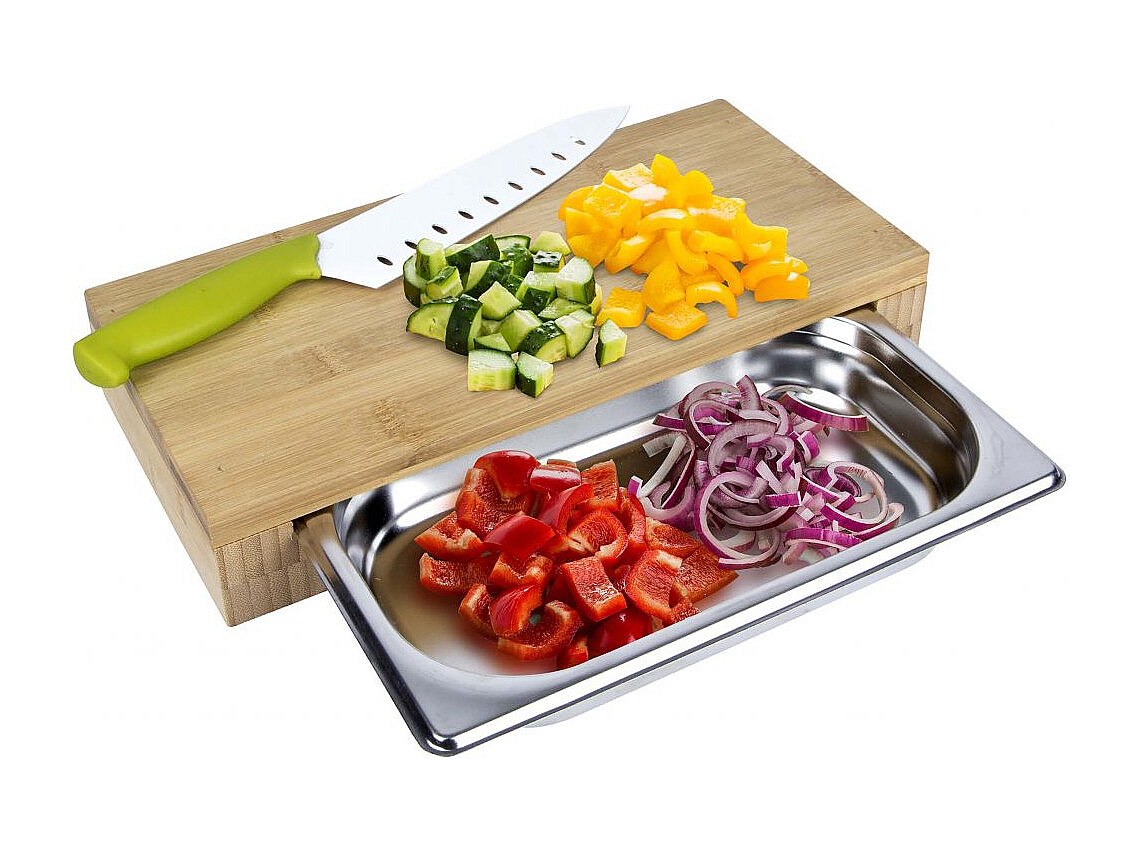 Planche A Decouper Tiroir Integre 38.5x26.5x5.5 Beige, Argent