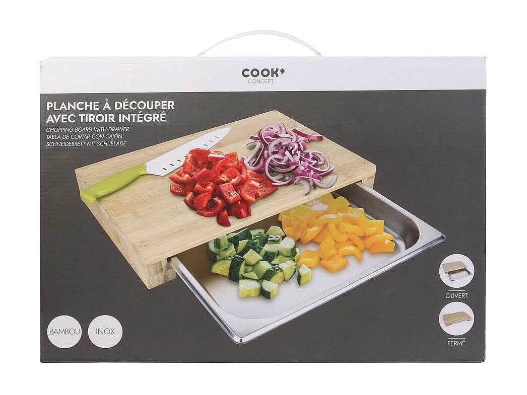 Planche A Decouper Tiroir Integre 38.5x26.5x5.5 Beige, Argent