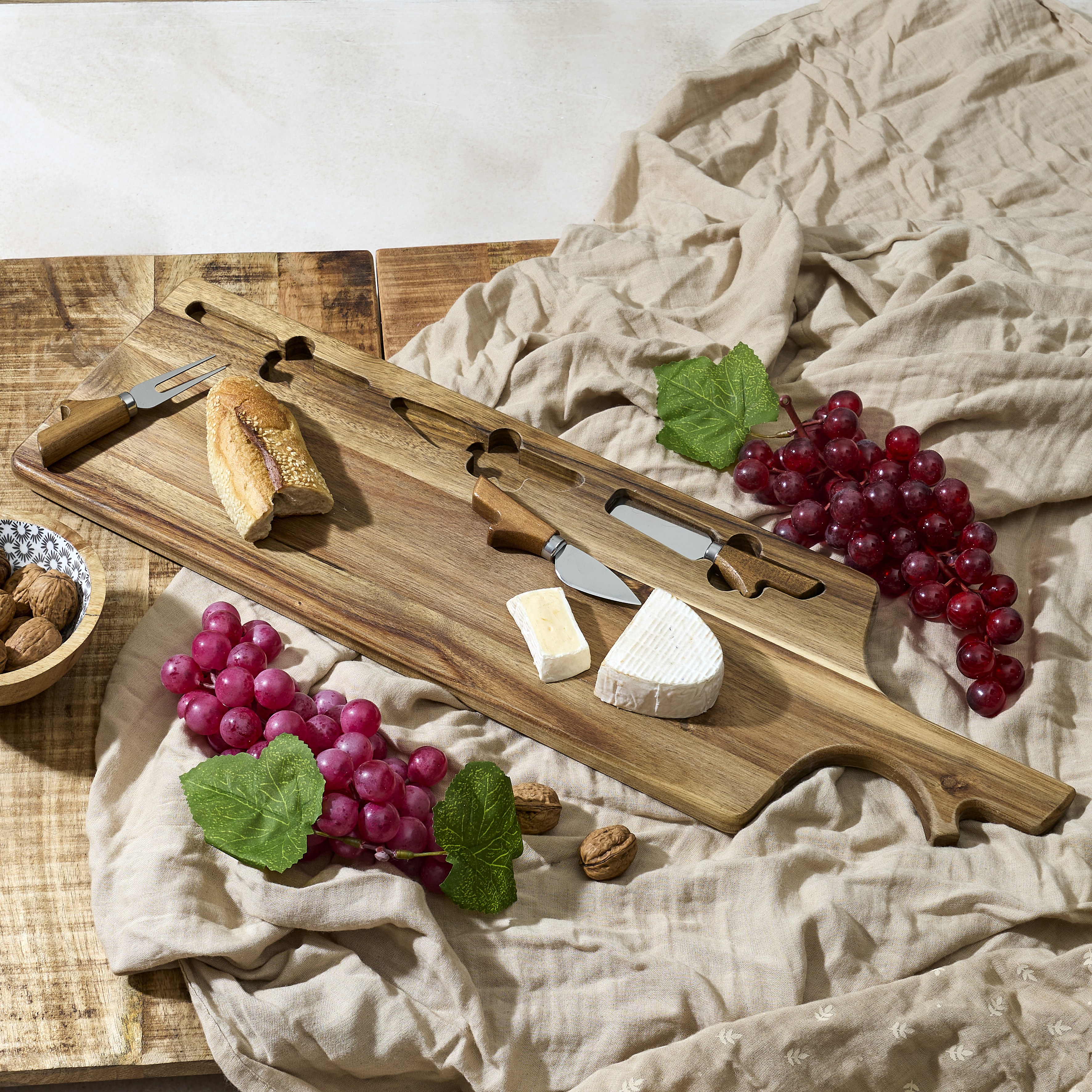 Planche A Fromage Acacia Avec 3 Couteaux Marron