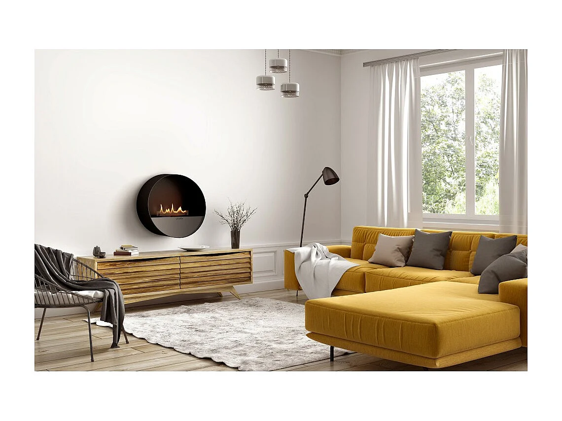 Planika - Cheminée bioéthanol murale et au sol sans conduit BEV, télécommande, acier, mur et sol