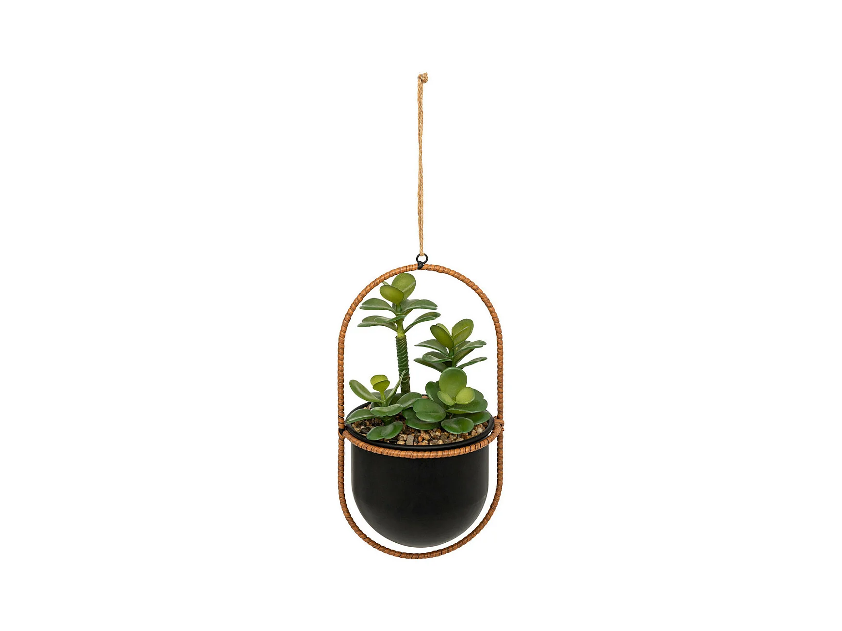 Plante artificielle dans un pot en métal Noir à suspendre H 31 cm
