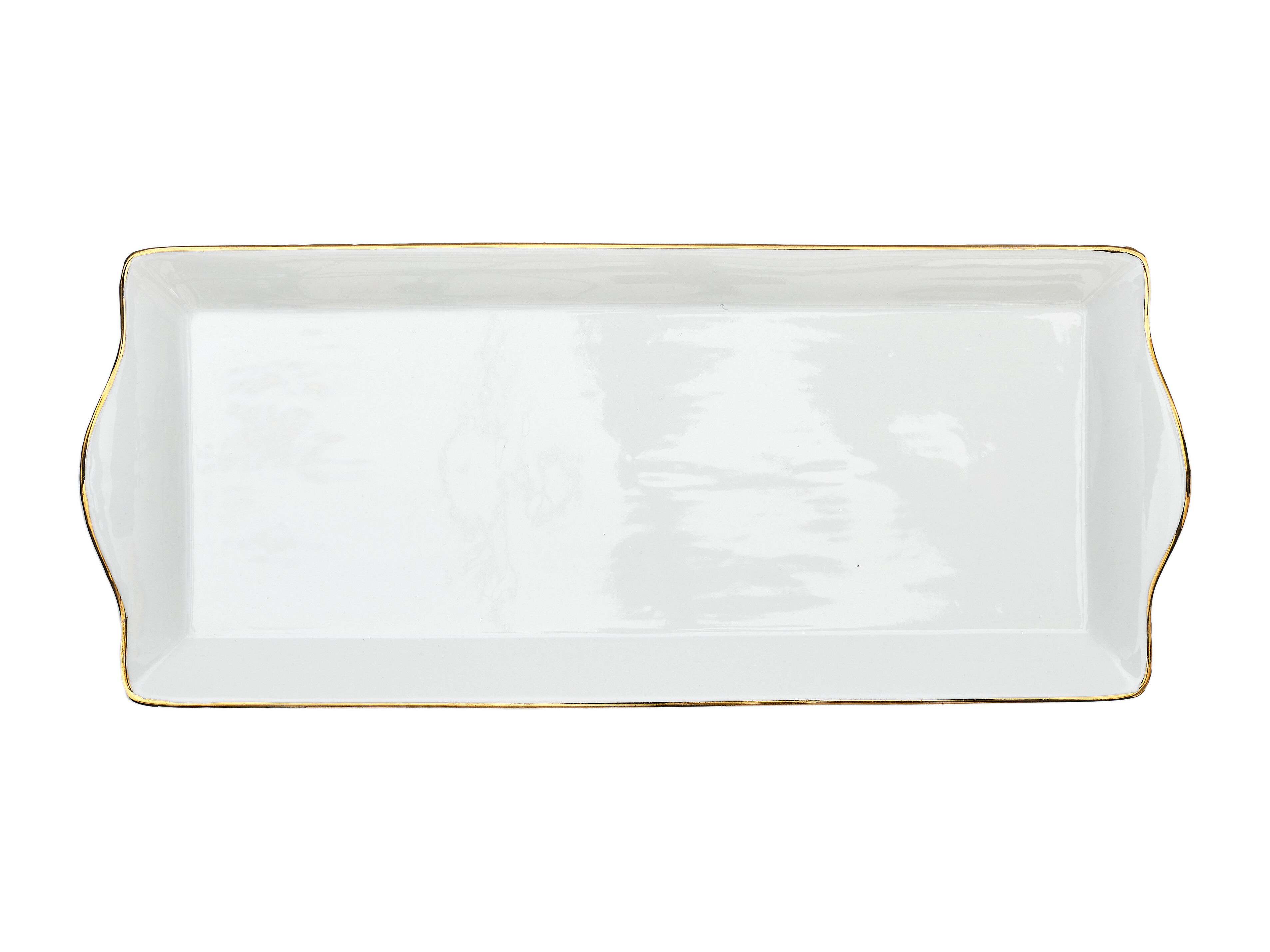 Plat De Service Porcelaine Lisere Dore 34x14cm2 Blanc, Or