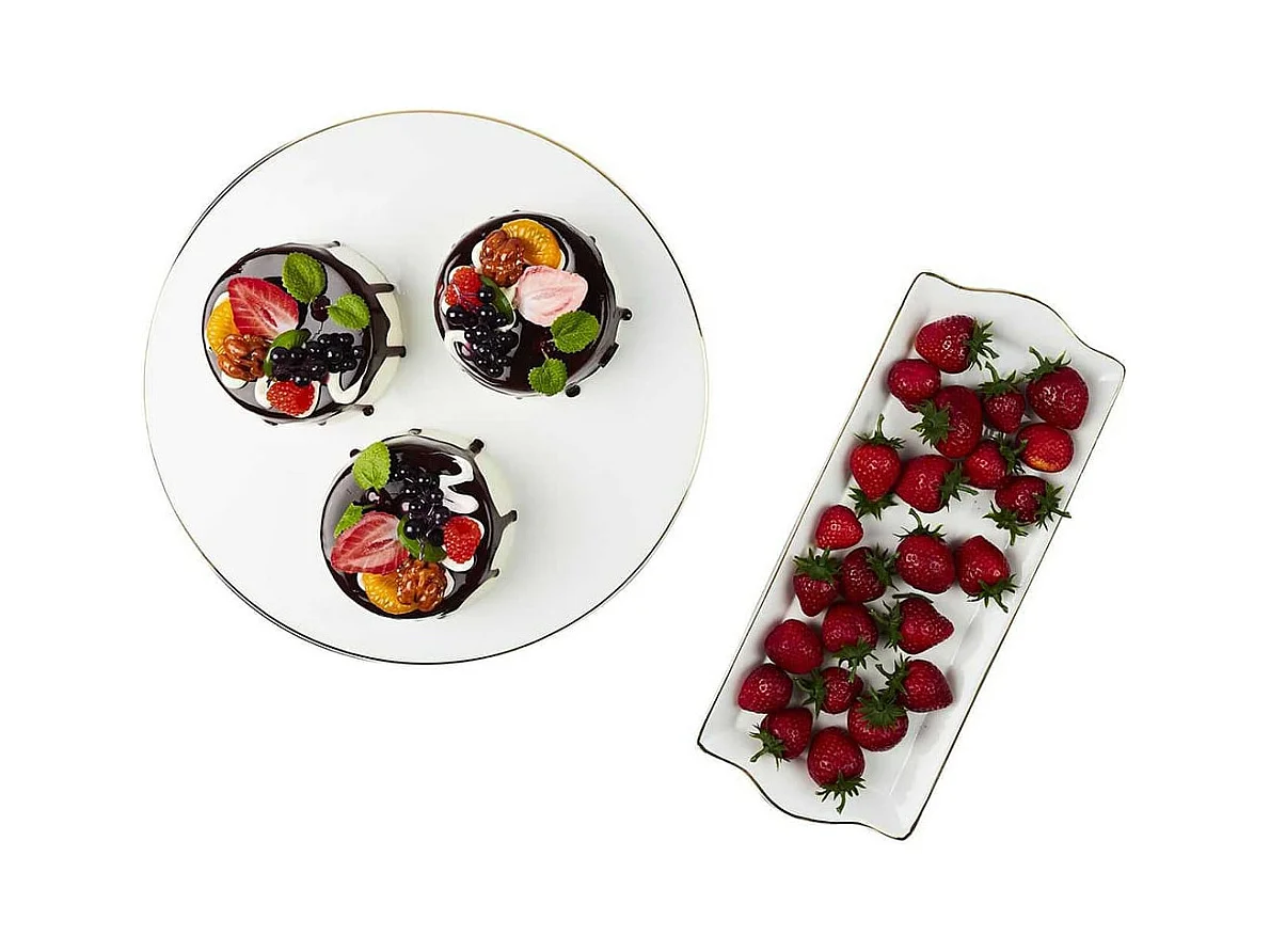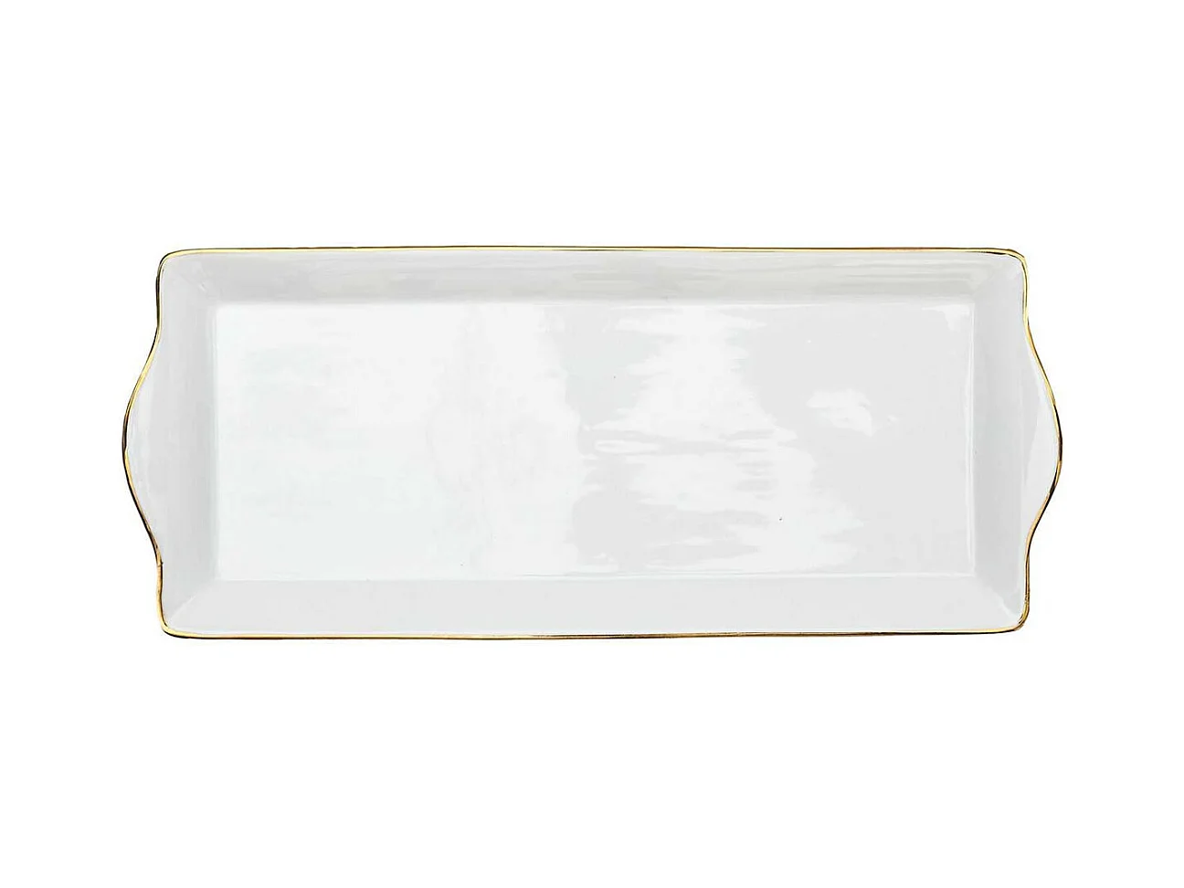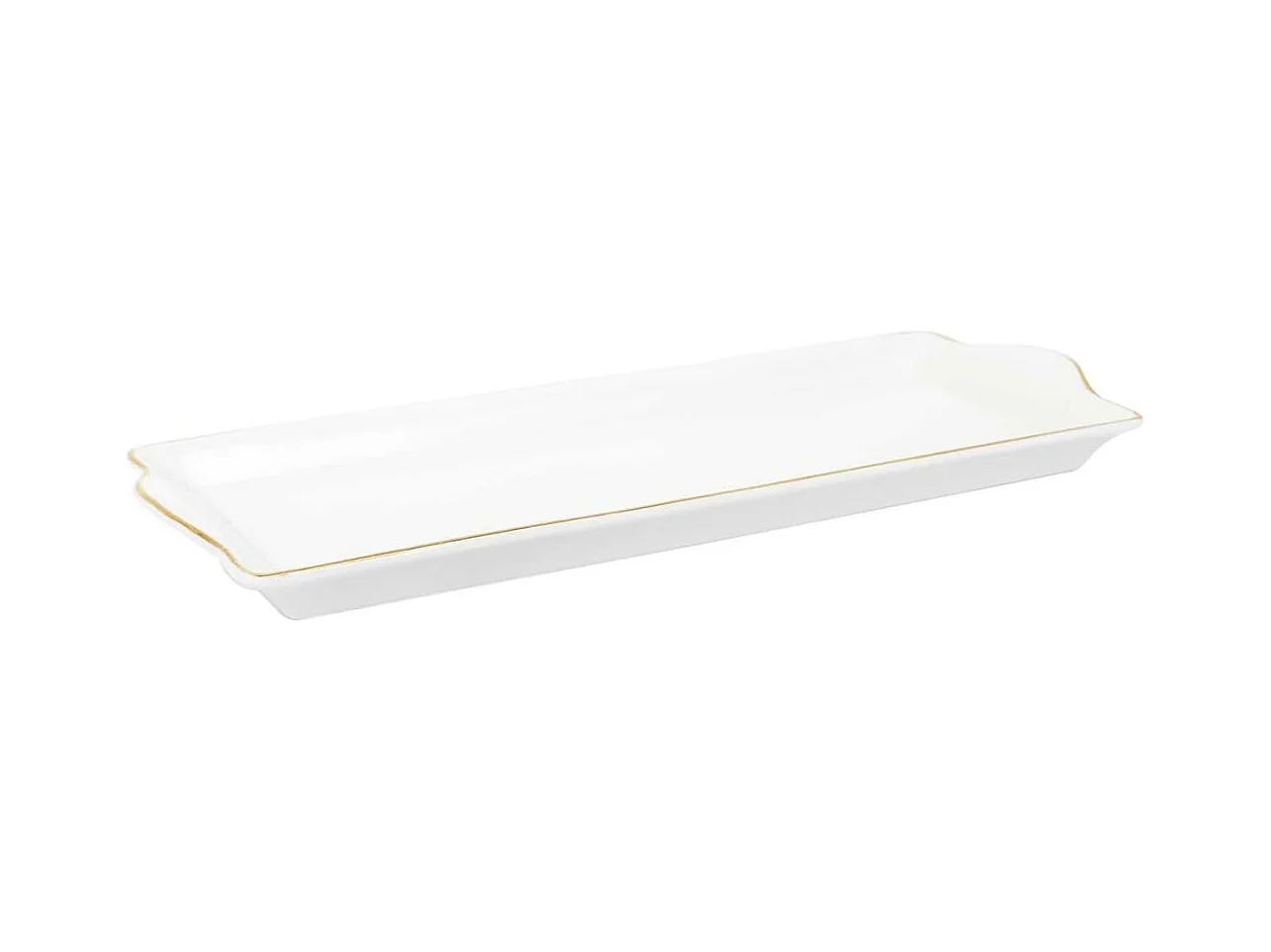 Plat de Service Rectangulaire en Porcelaine Liseré Doré 31x15 cm - CLASS