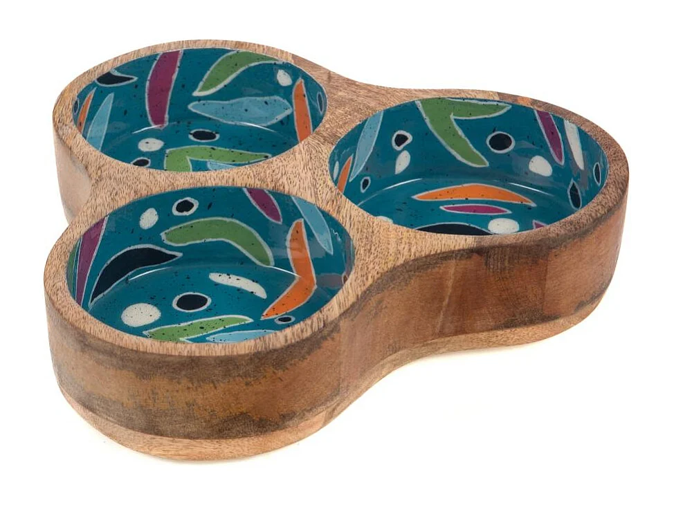 Lot de 2 plateaux à 3 coupelles pour apéro en bois de teck - DAMIANO