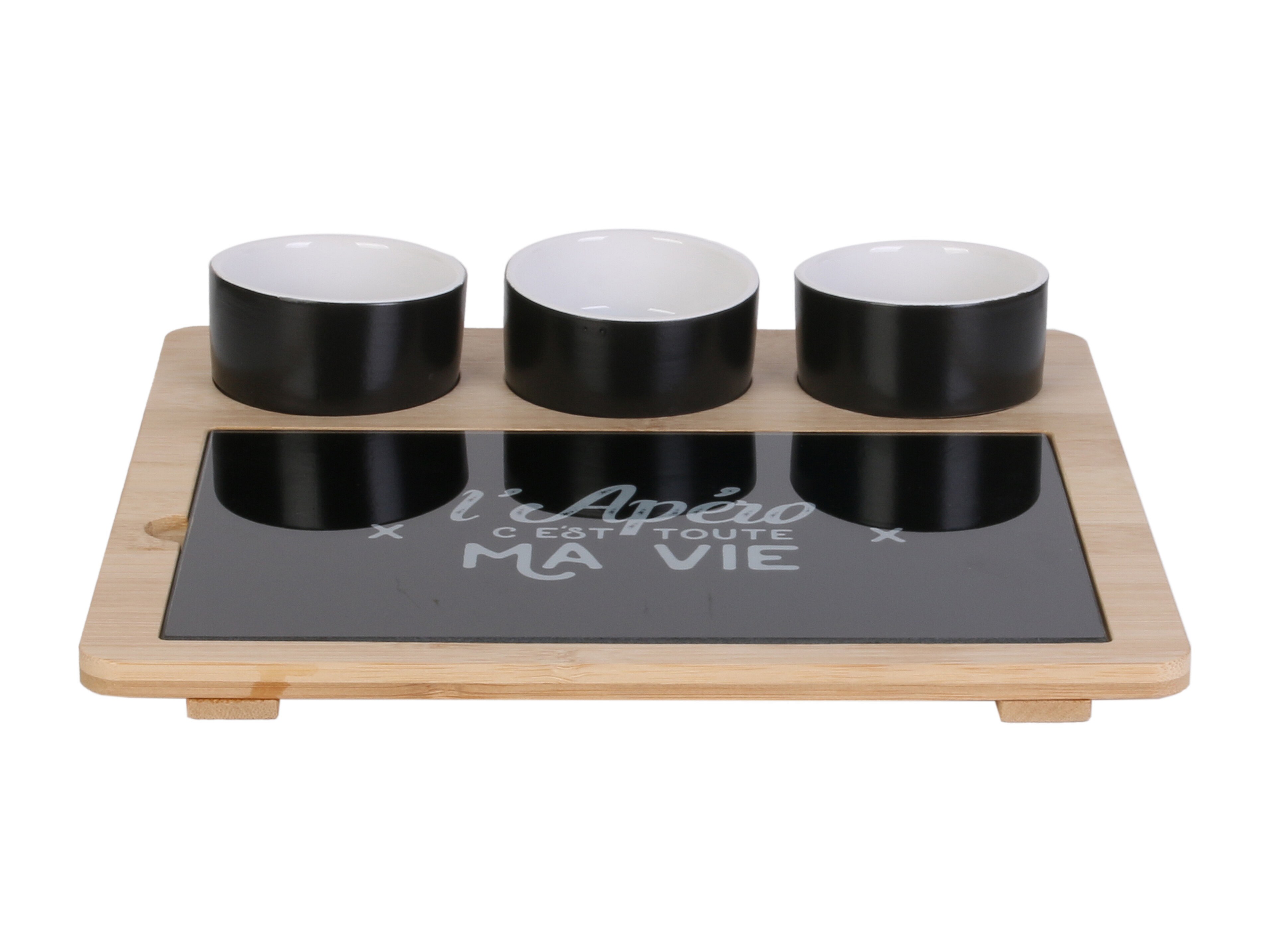 Plateau Bambou Avec Planche Et Coupelle X3 Marron, Noir, Blanc