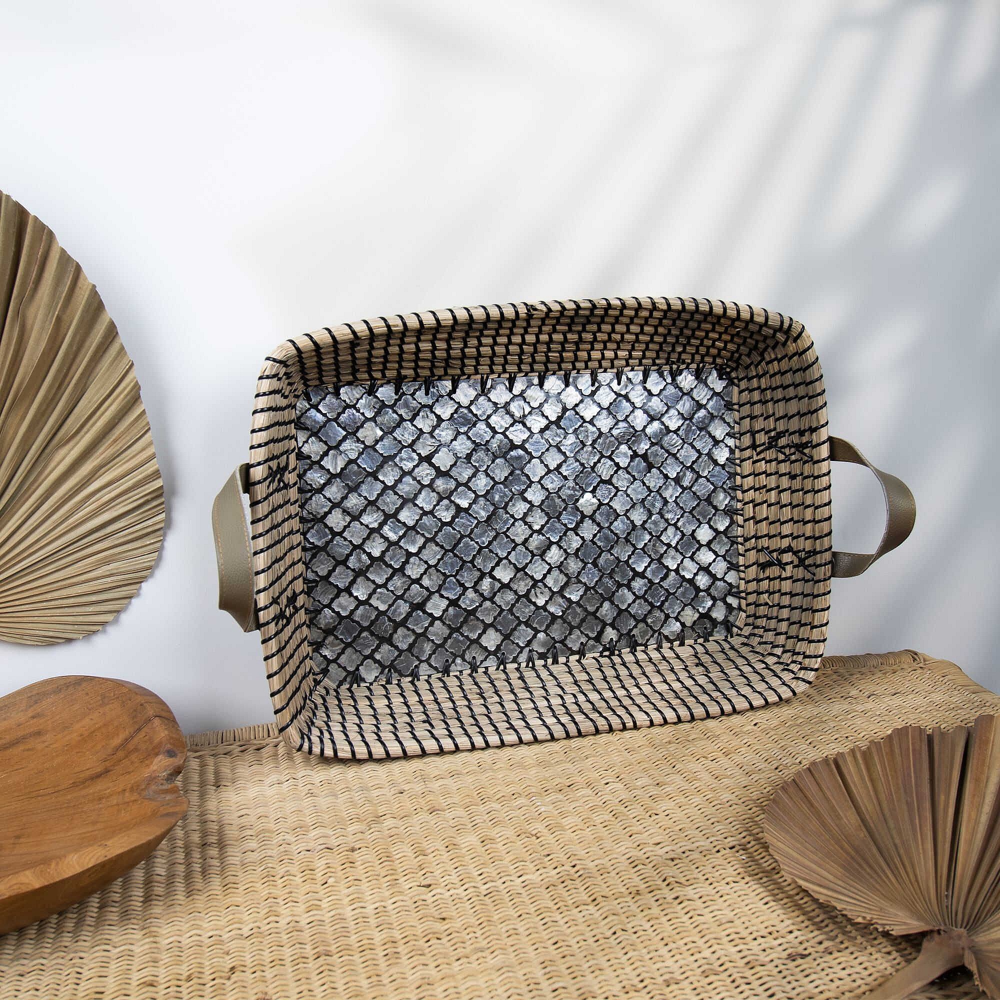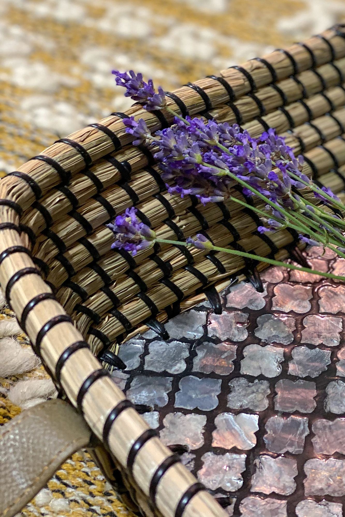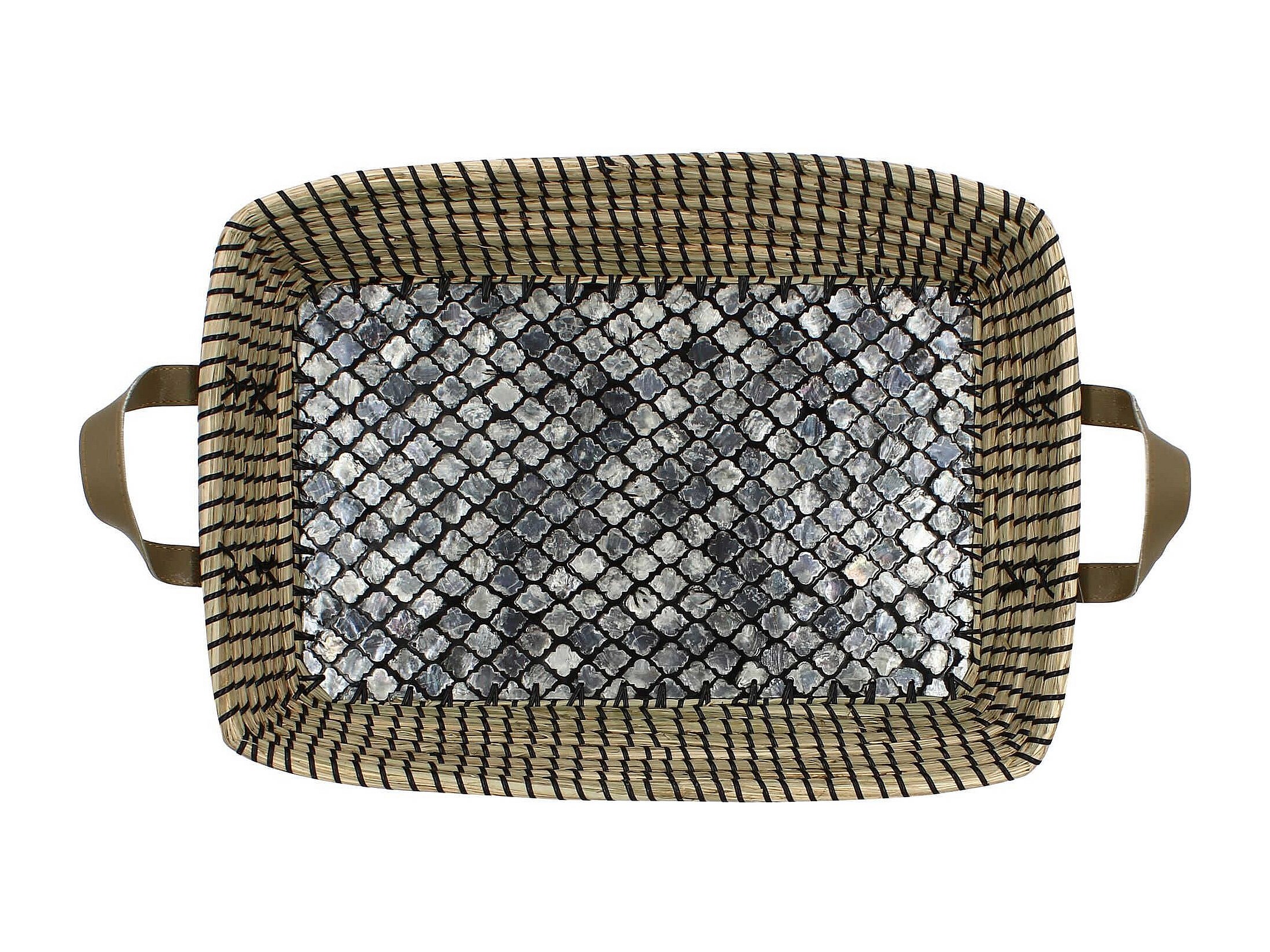 Plateau rond en jonc de mer noir et marron Ø 38 cm