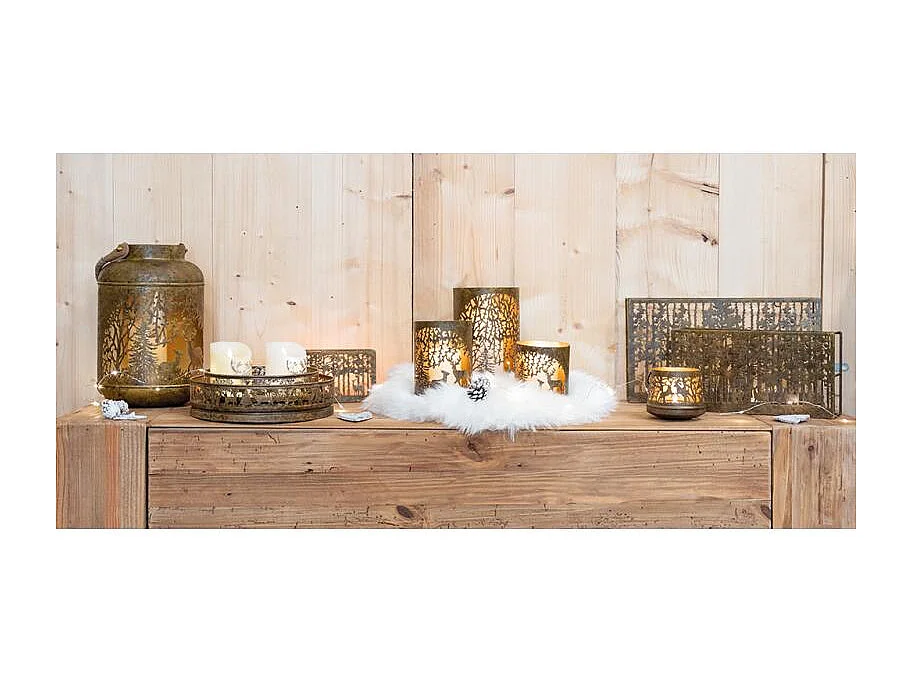 Plateaux en métal doré antique et manguier Cerf et Biche