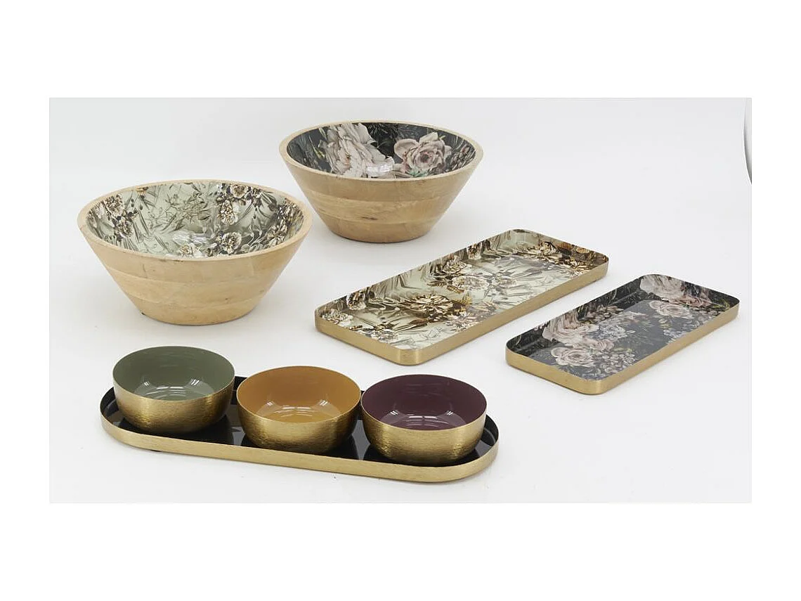 Plateaux rectangulaires en métal Fleurs retro (lot de 2)