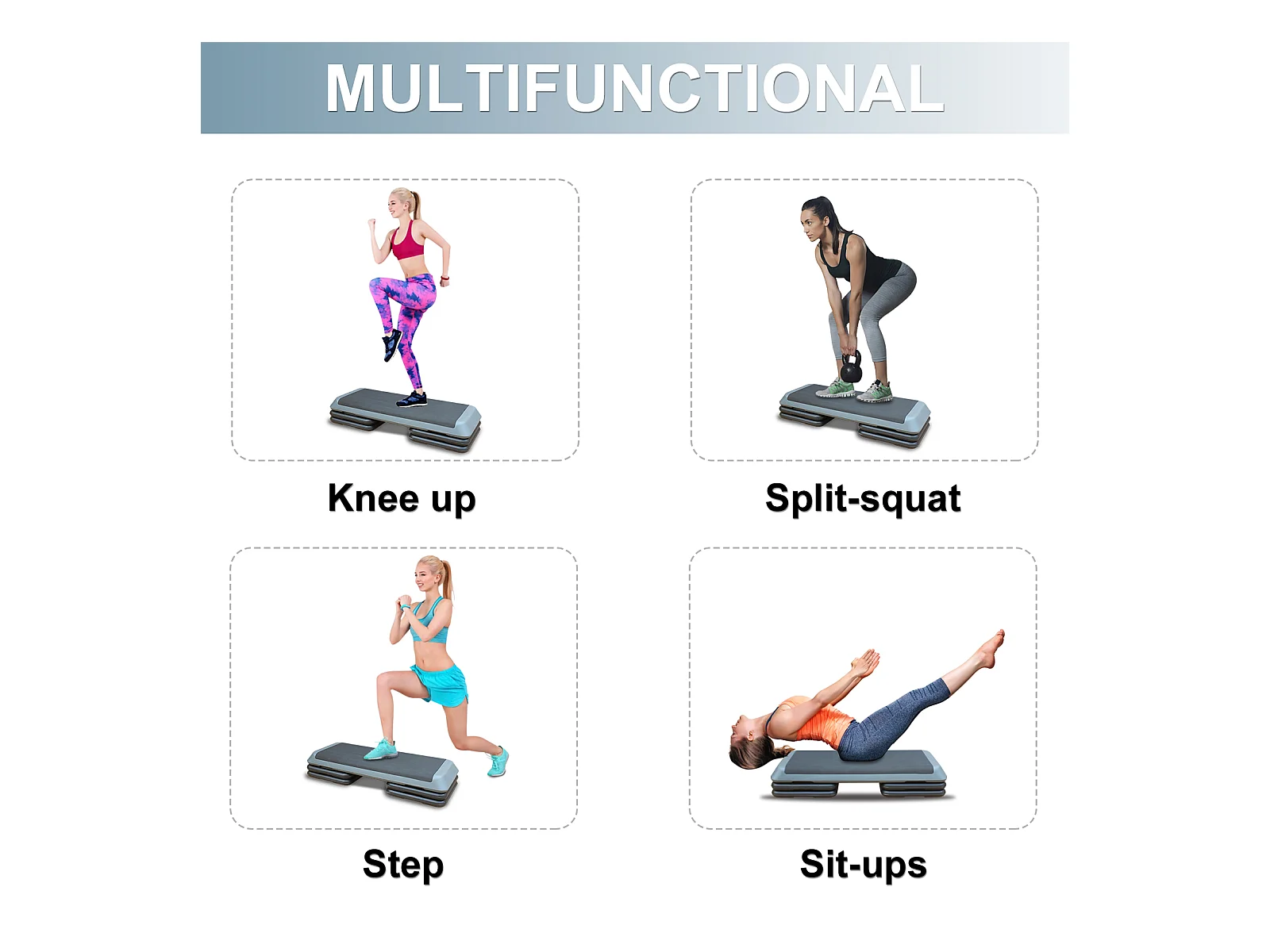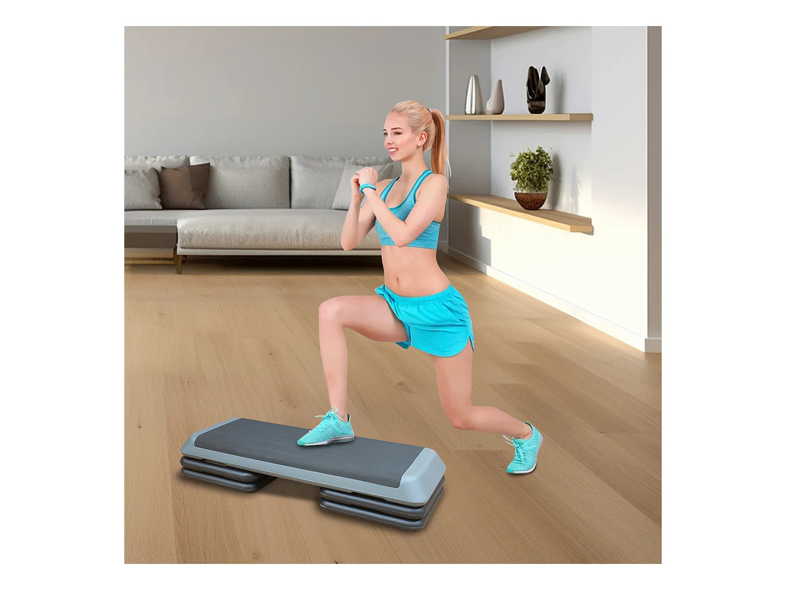 Step aérobic réglable en hauteur, antidérapant, plastique, gris (77x36x20.5cm)