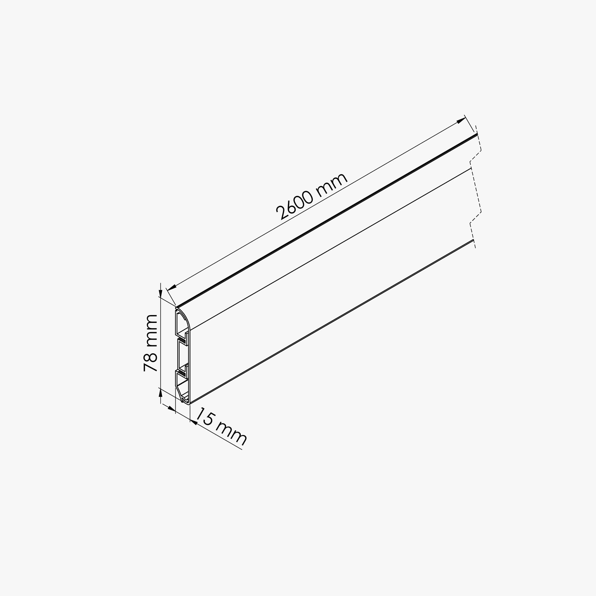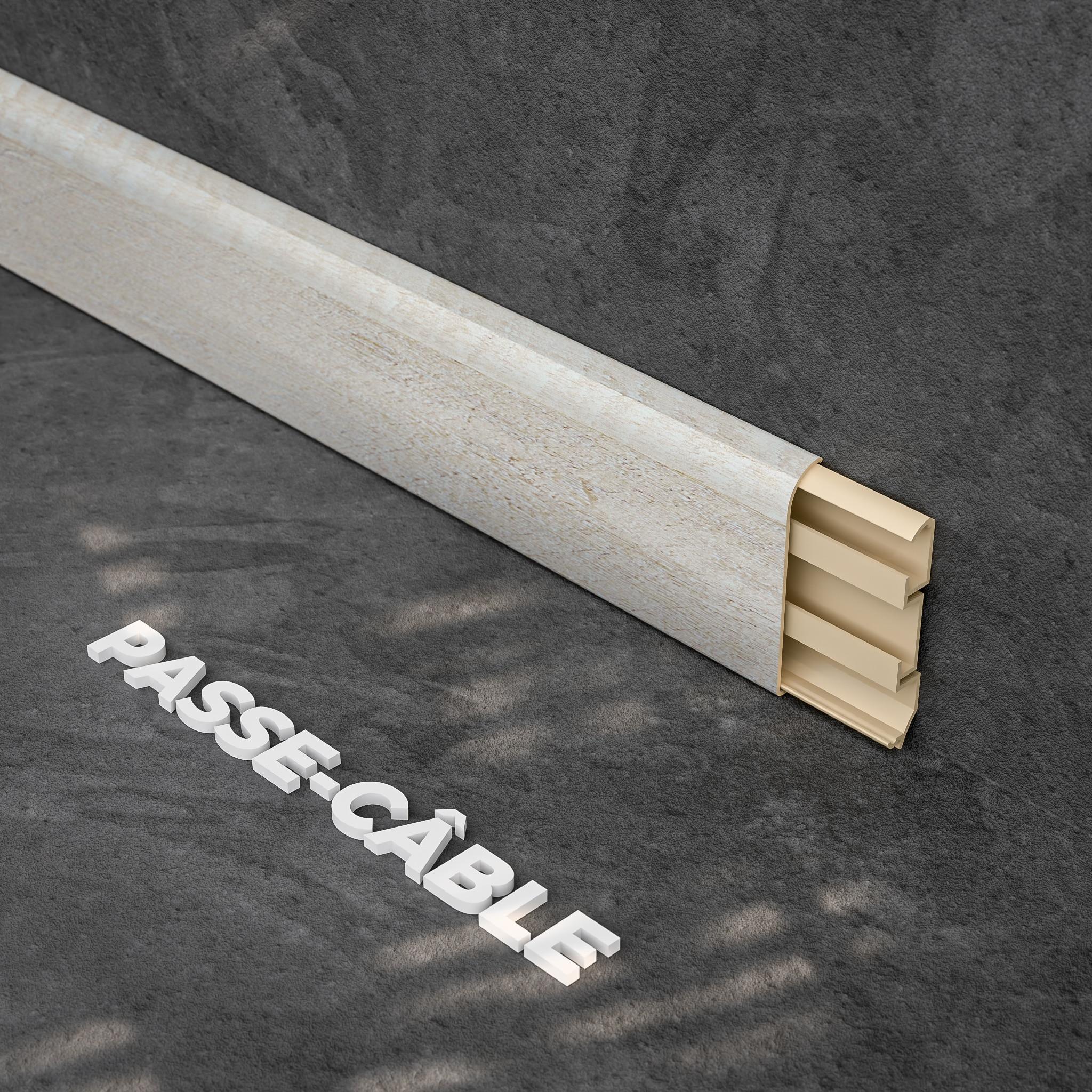 Plinthe Passe-Câble PVC 80 mm - Planche Blanchie - 2.60 m, Lot de 5