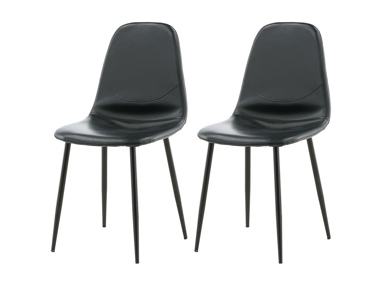 DYVIK - Lot de 2 Chaises Simili Noir et Piétement Acier Noir