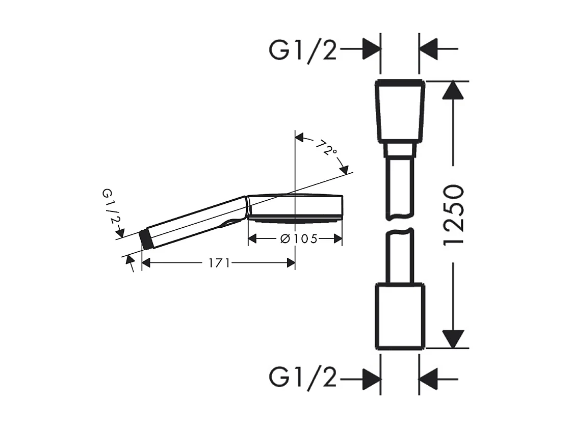 Ensemble support mural et douchette 1jet avec flexible de douche 125 cm blanc/chromé Hansgrohe Croma Select E