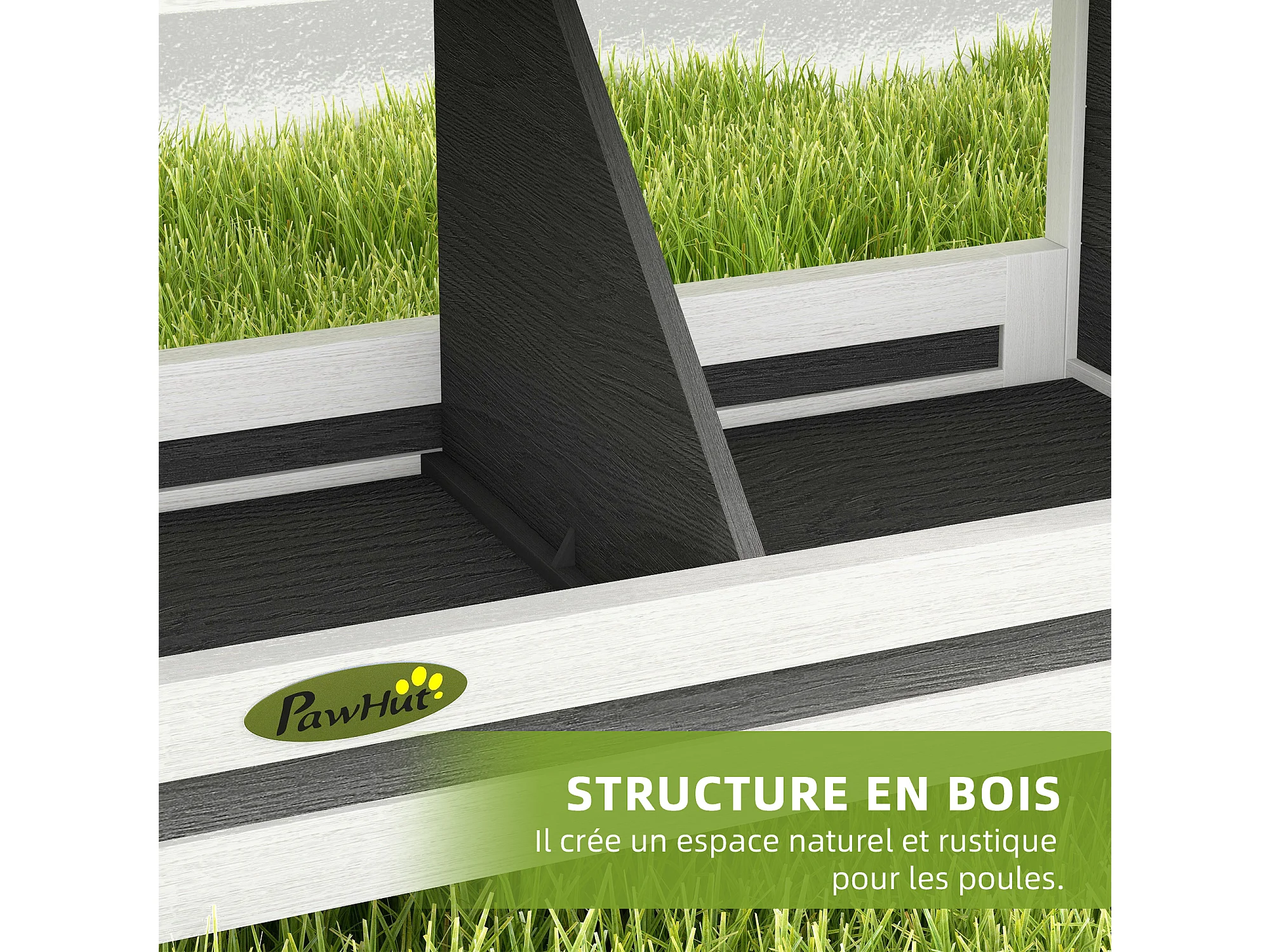 Pondoir pour poules 3 emplacements nichoir en bois avec fond et toit gris blanc noir