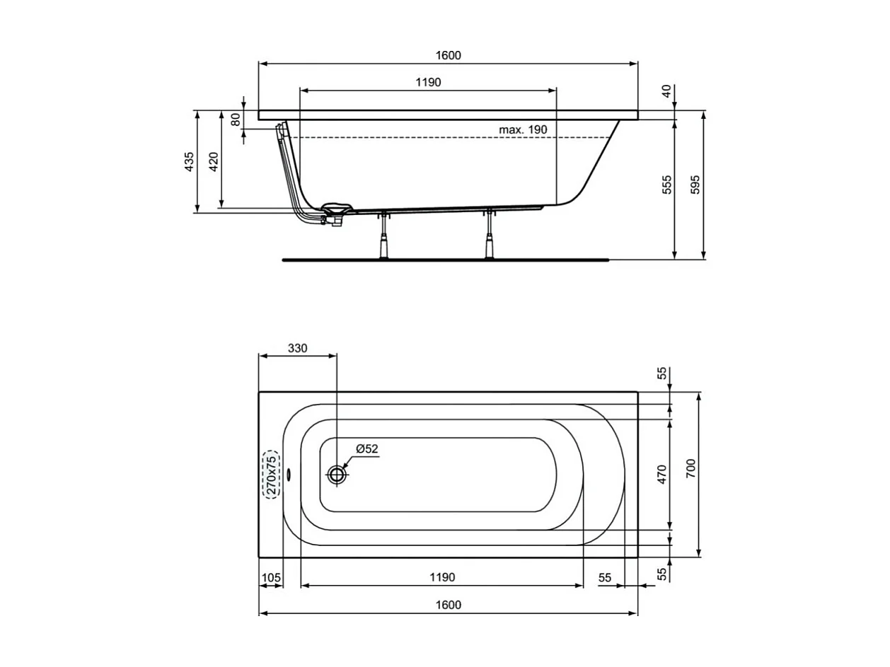 PORCHER Baignoire droite 160x70 Ulysse blanche