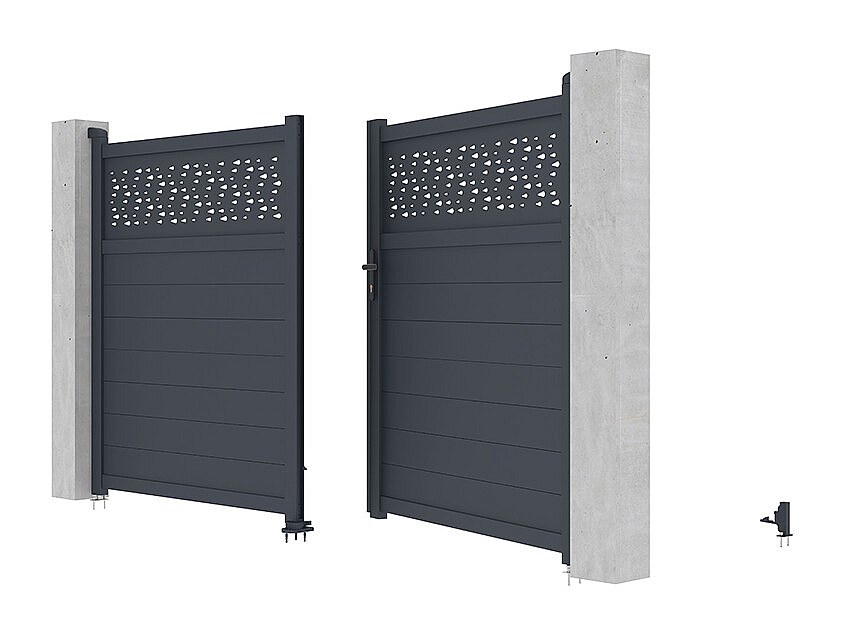 Portail battant aluminium semi plein à motifs L397 x H181 cm anthracite - BAZIO