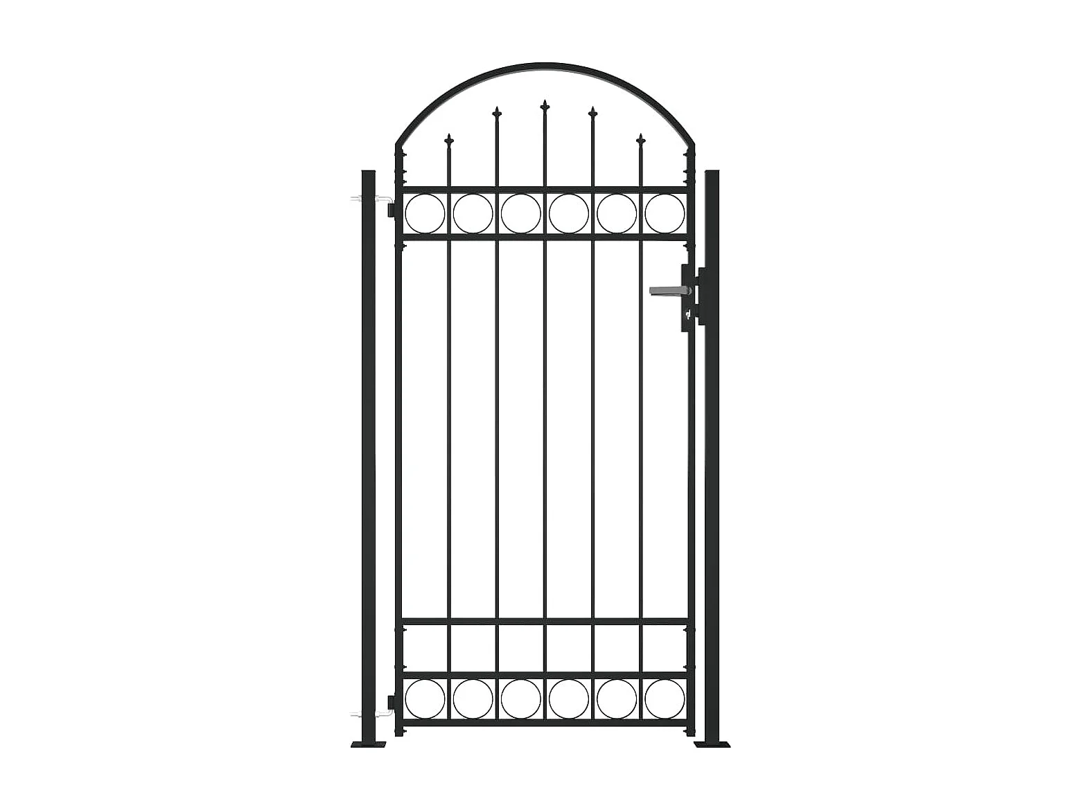 Portail de clôture à dessus arqué et 2 poteaux 105x204 Noir