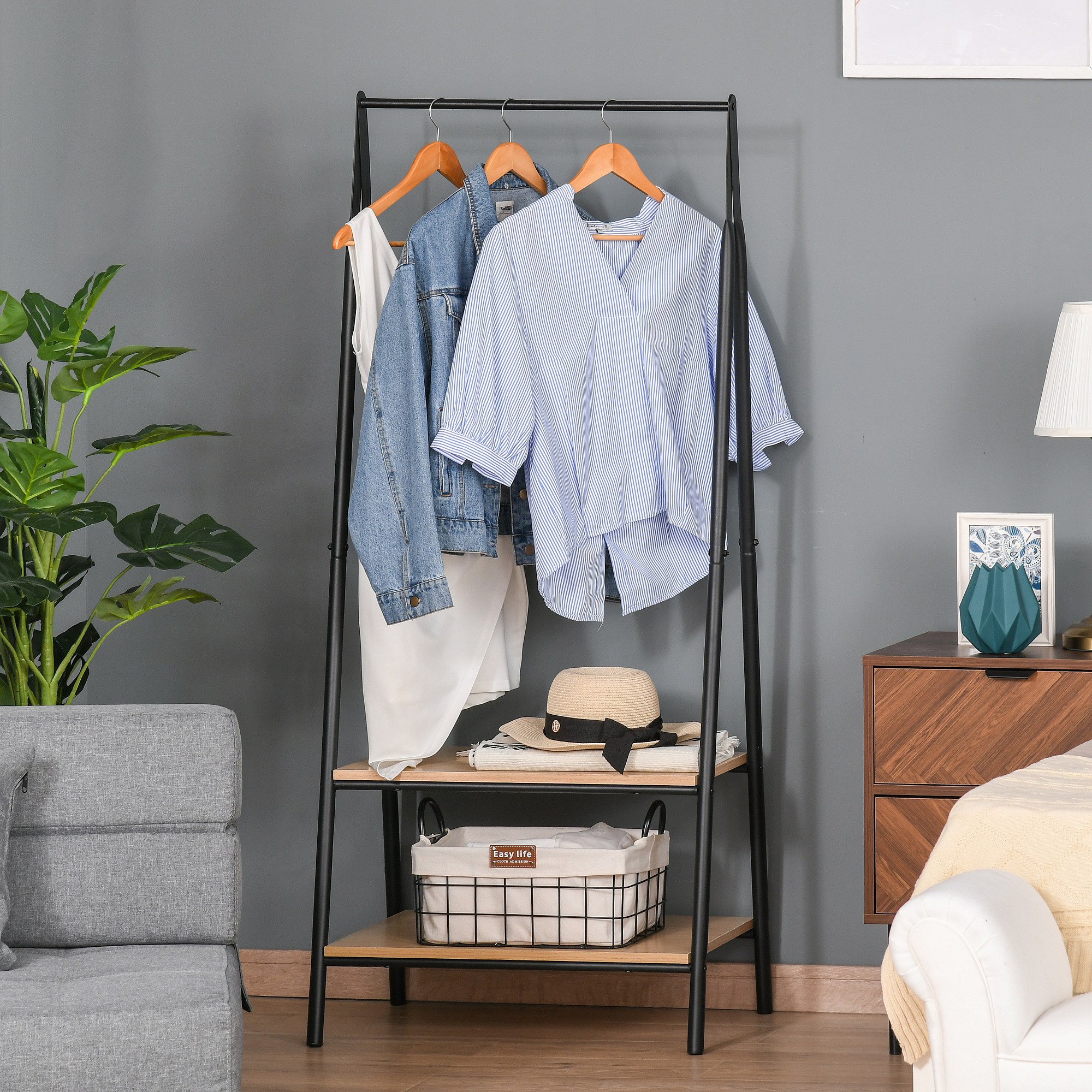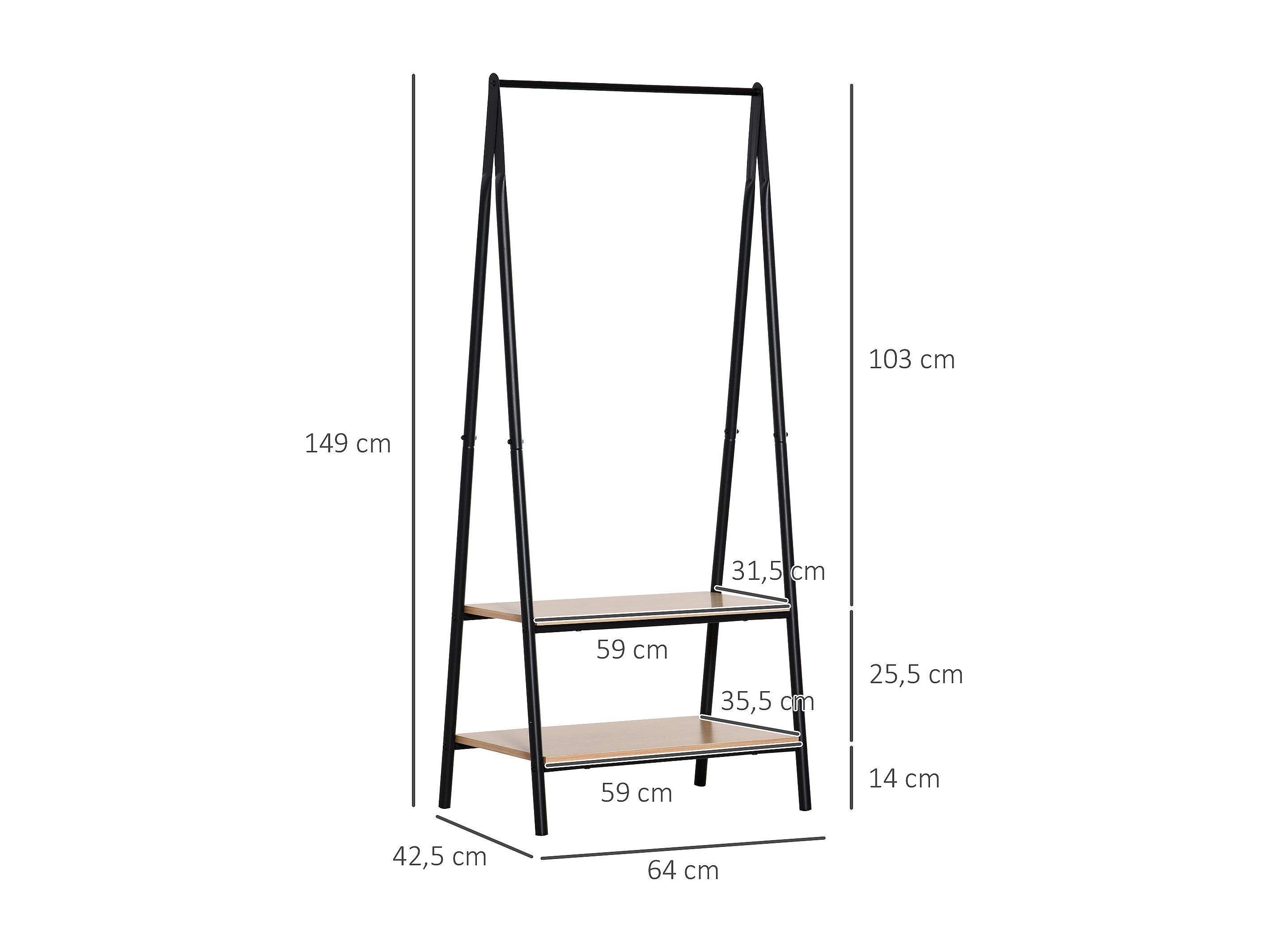 Portant à vêtements penderie style contemporain triangulaire dim. 64L x 43l x 149H cm 2 étagères MDF bois clair acier noir
