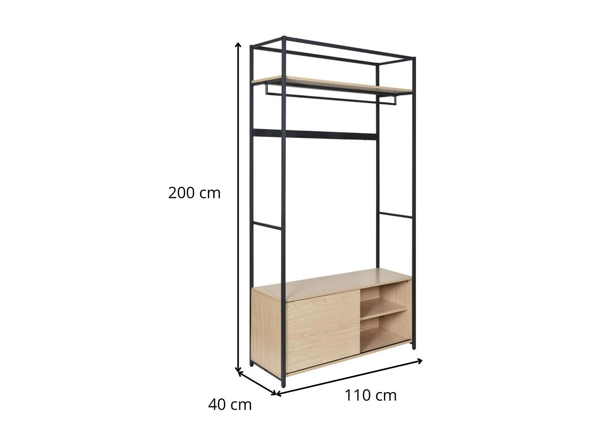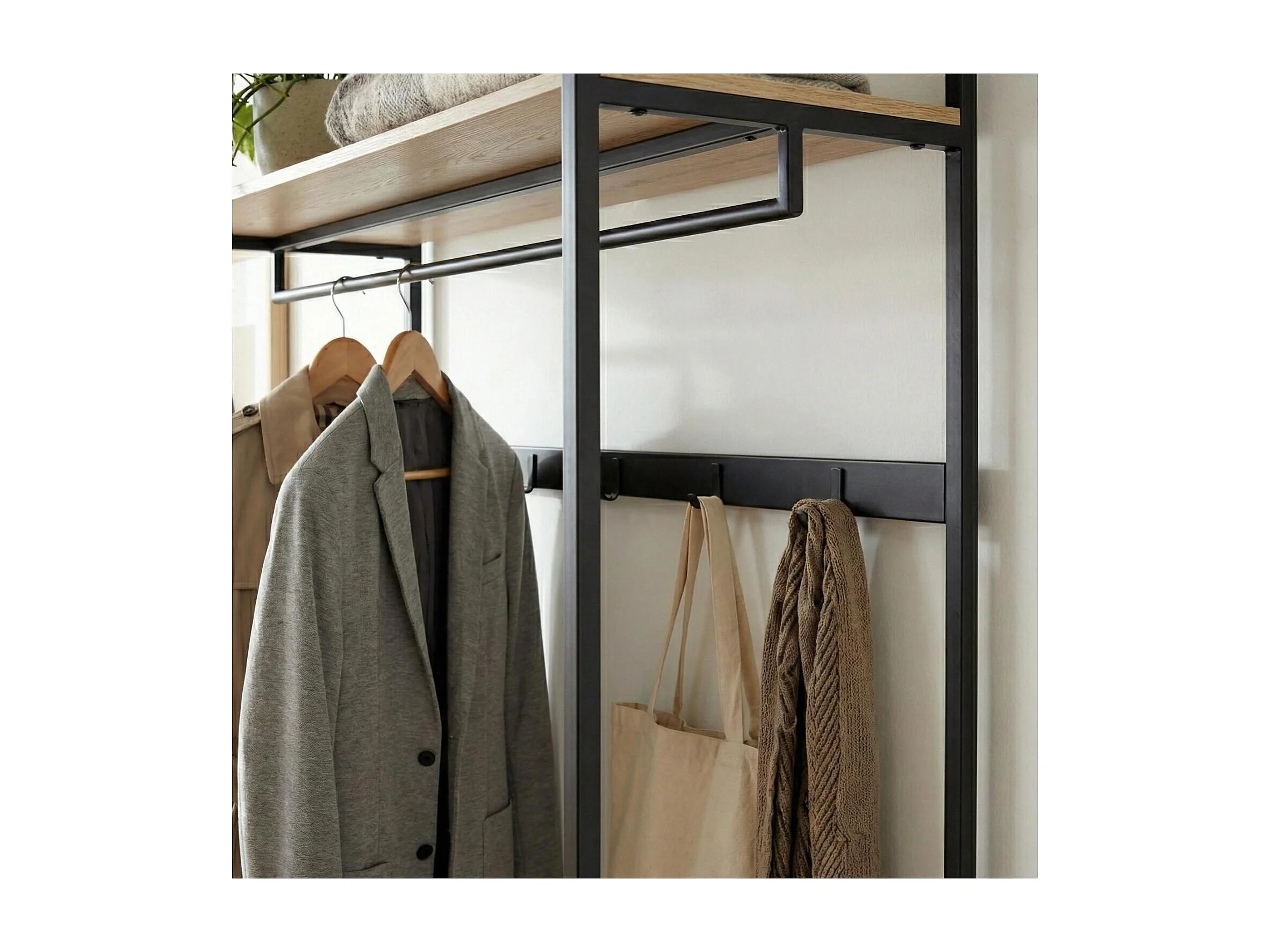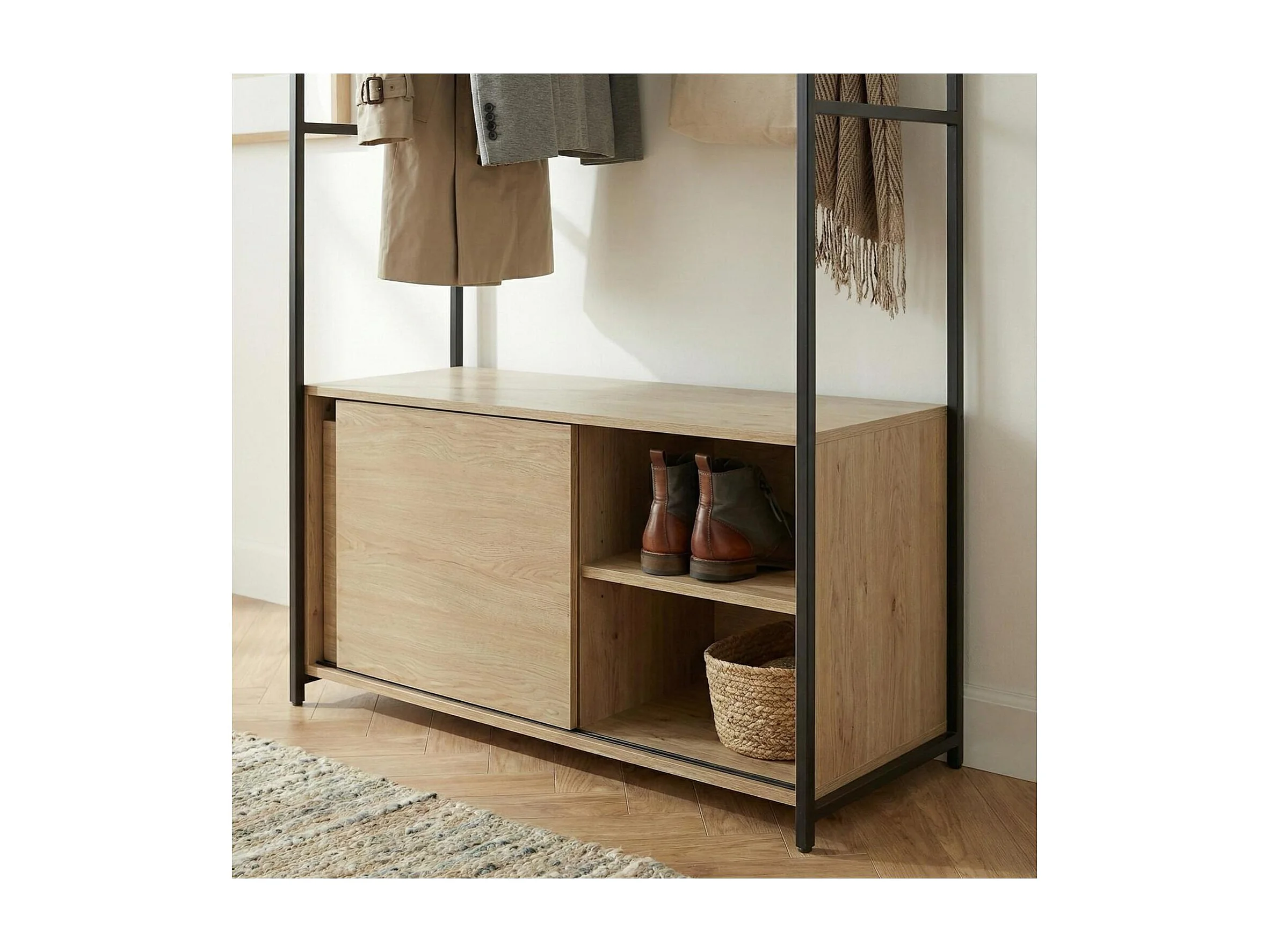 Portant d'entrée en bois et métal noir 110x200cm - rangement fermé et patères
