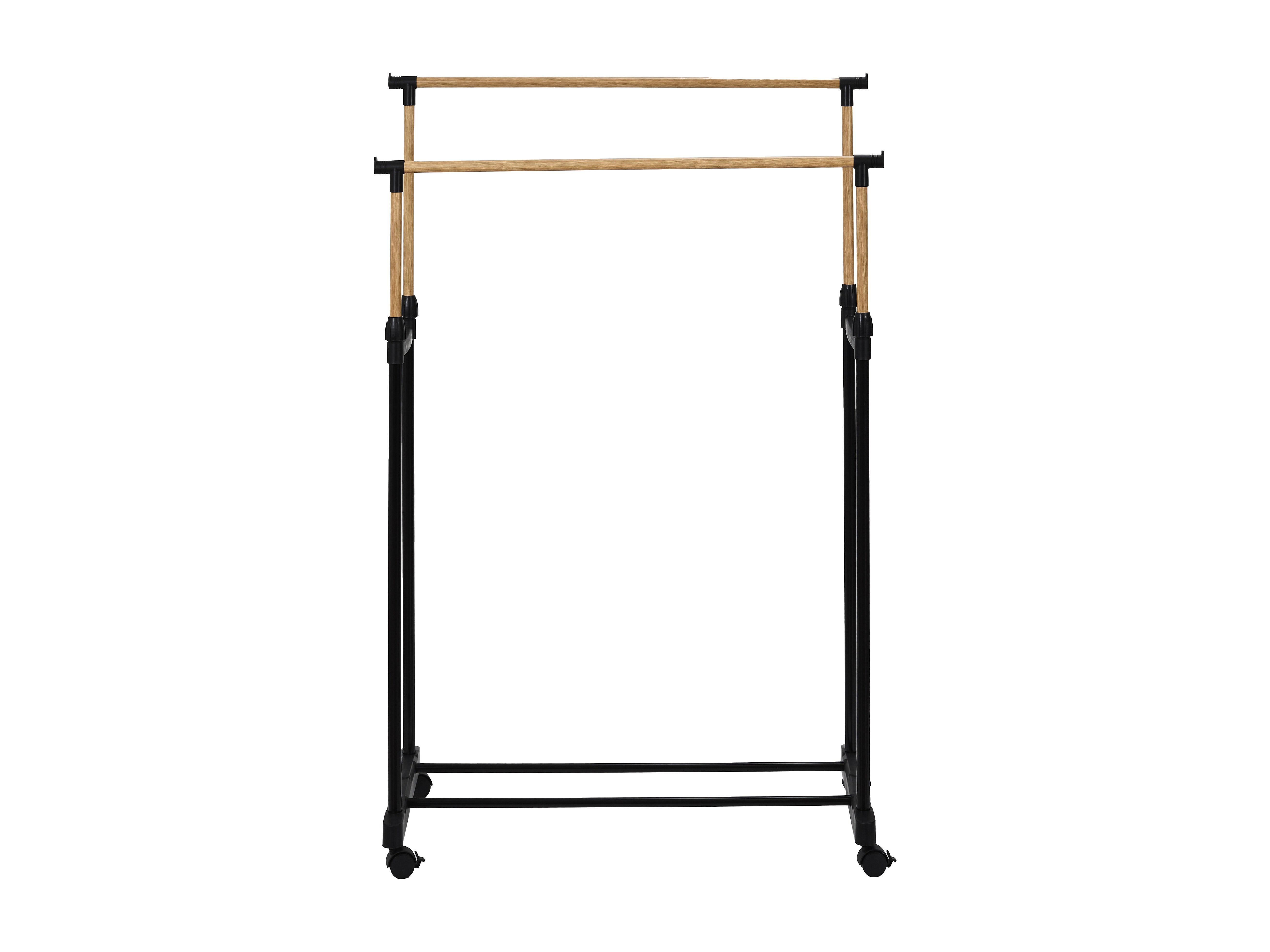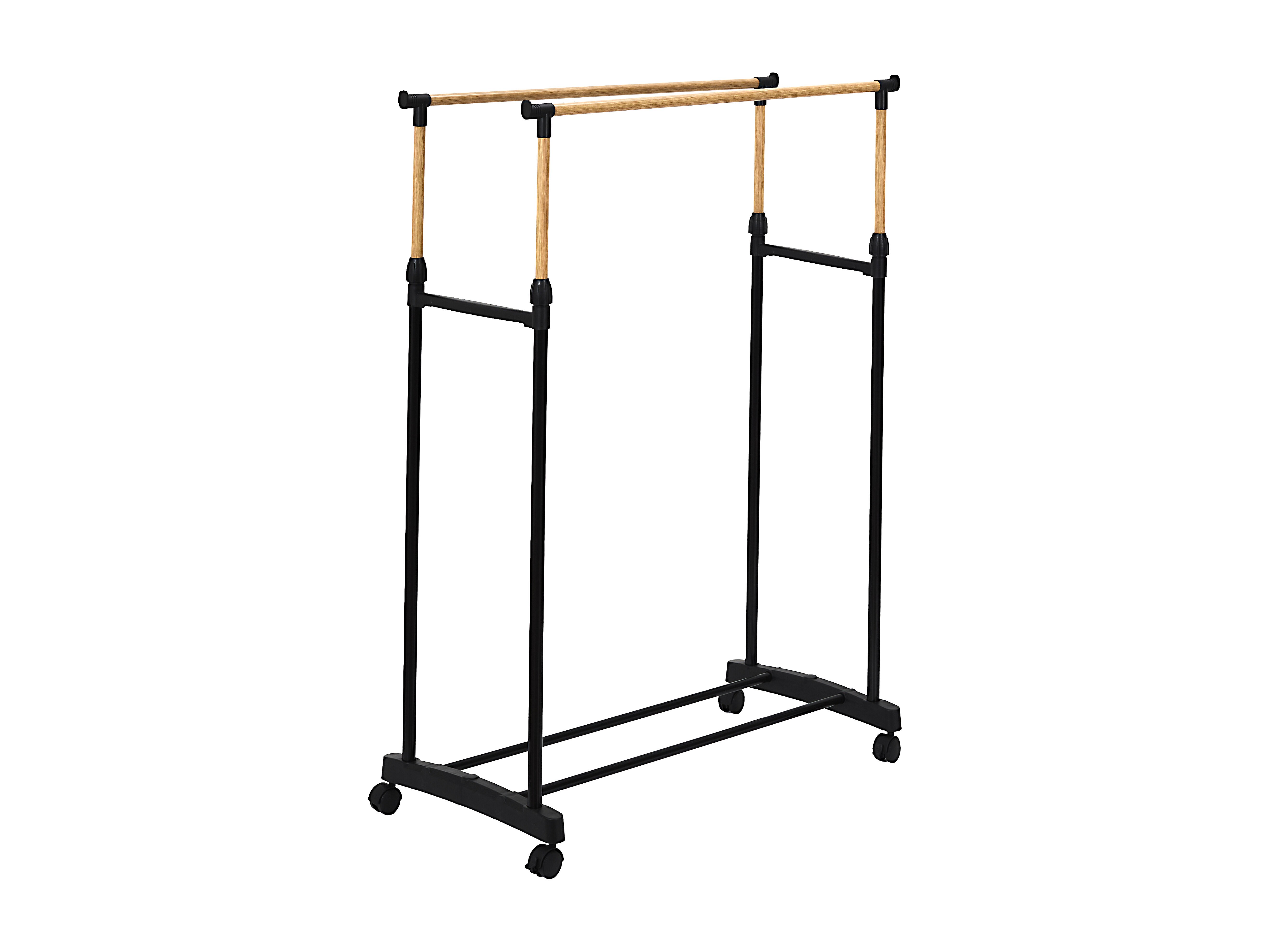 Portant hauteur ajustable sur roulettes noir et effet bois