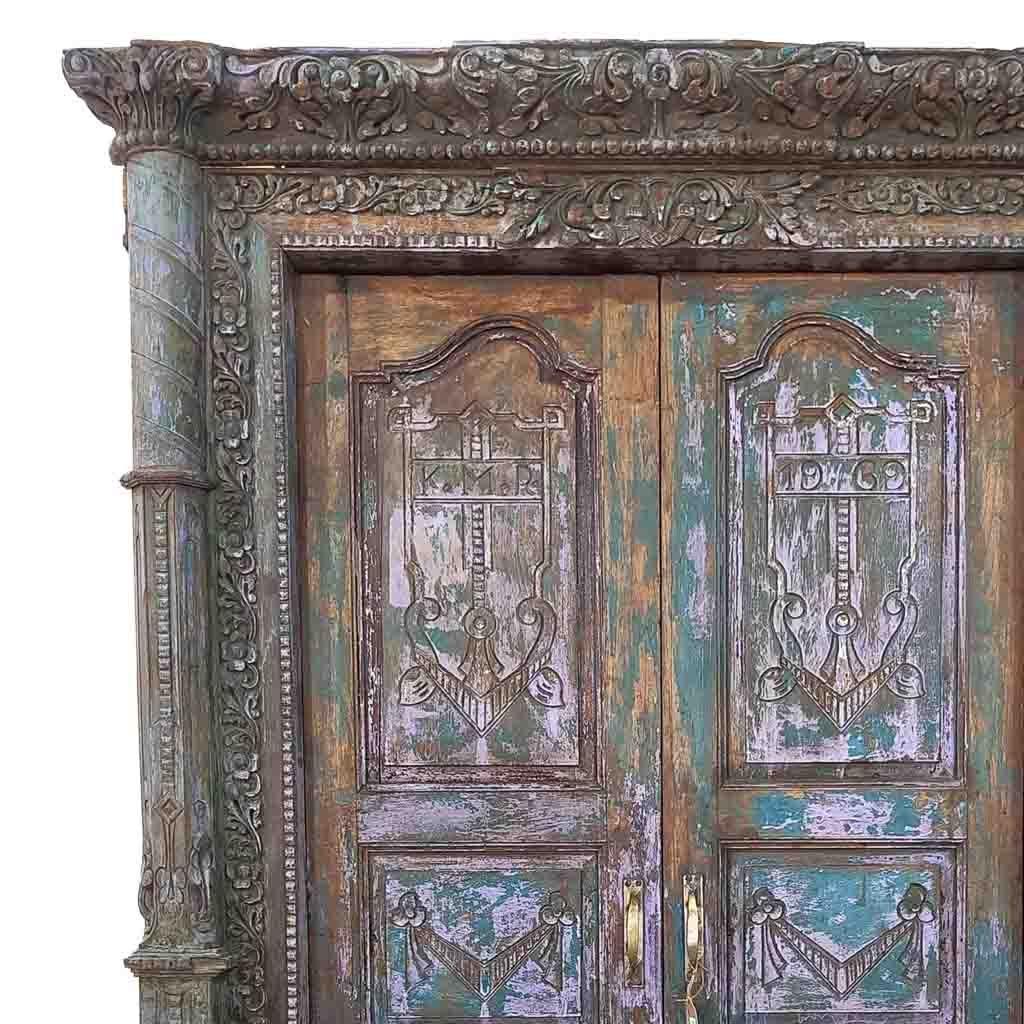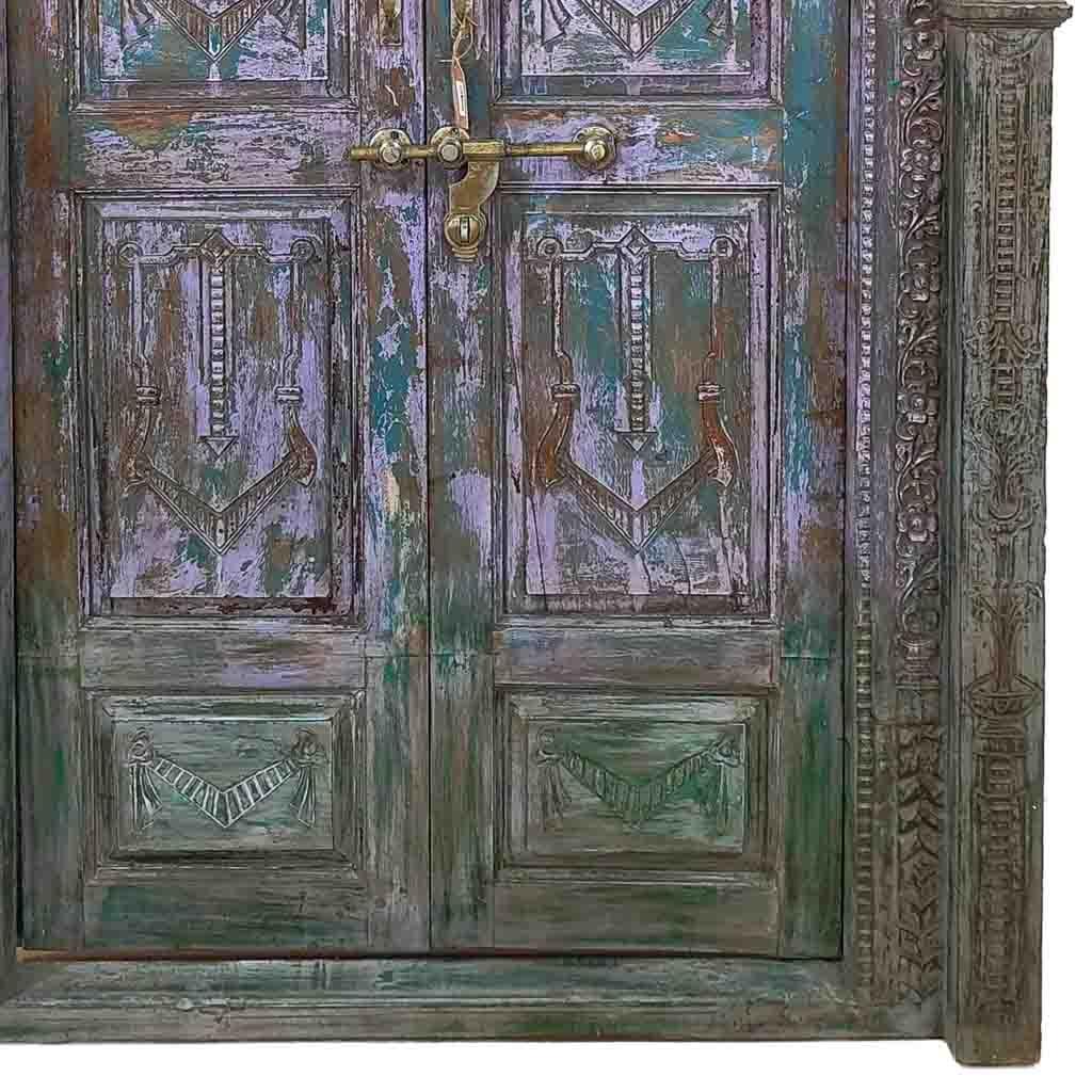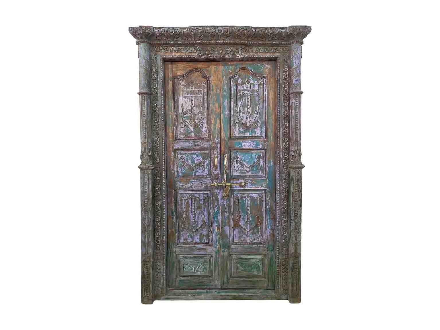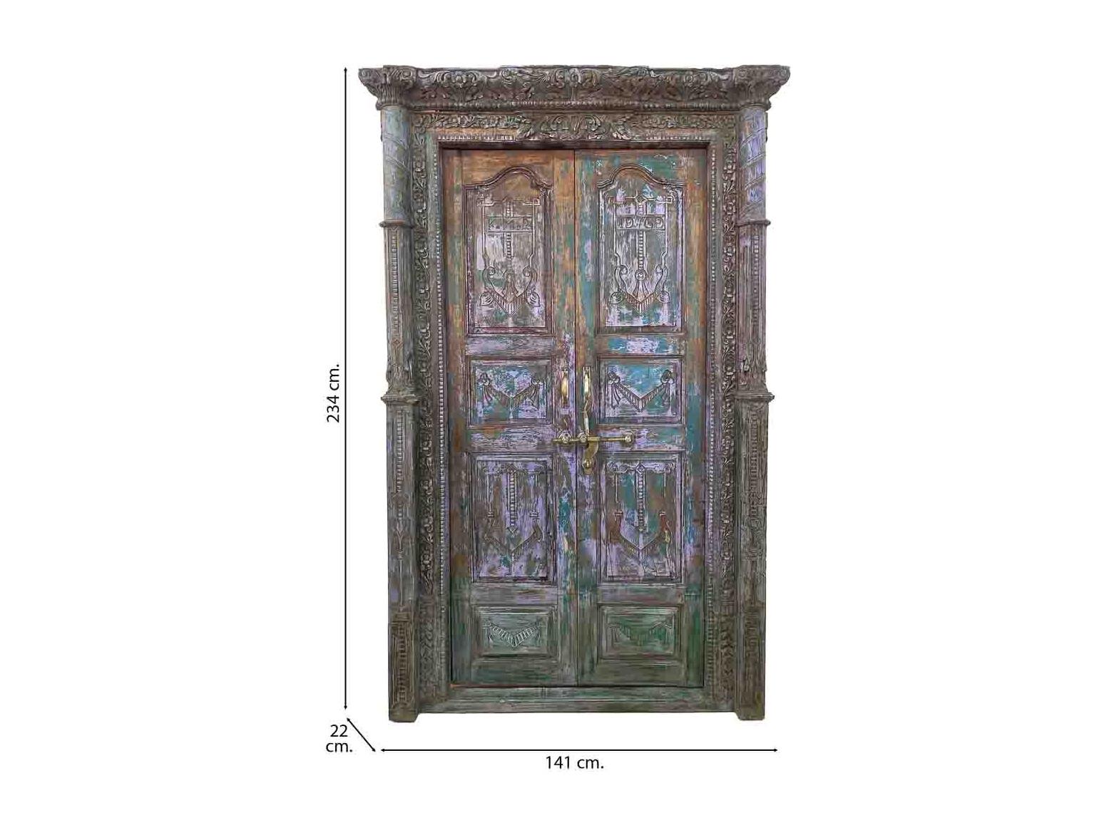 Porte artisanale en bois bleu 141 x 22 x 234 cm h