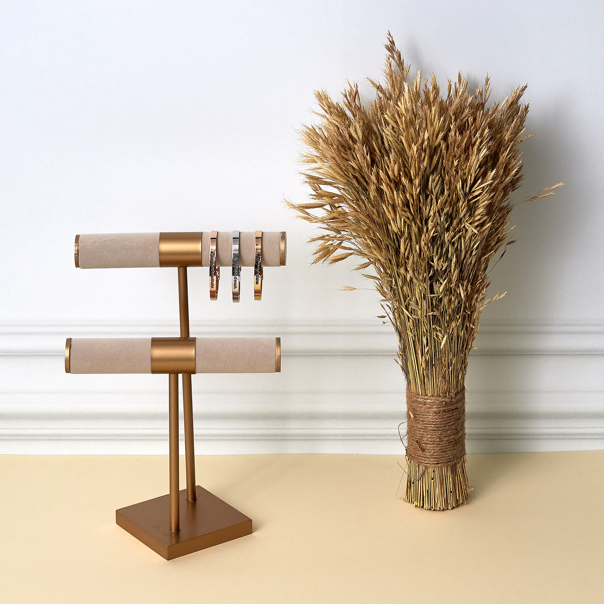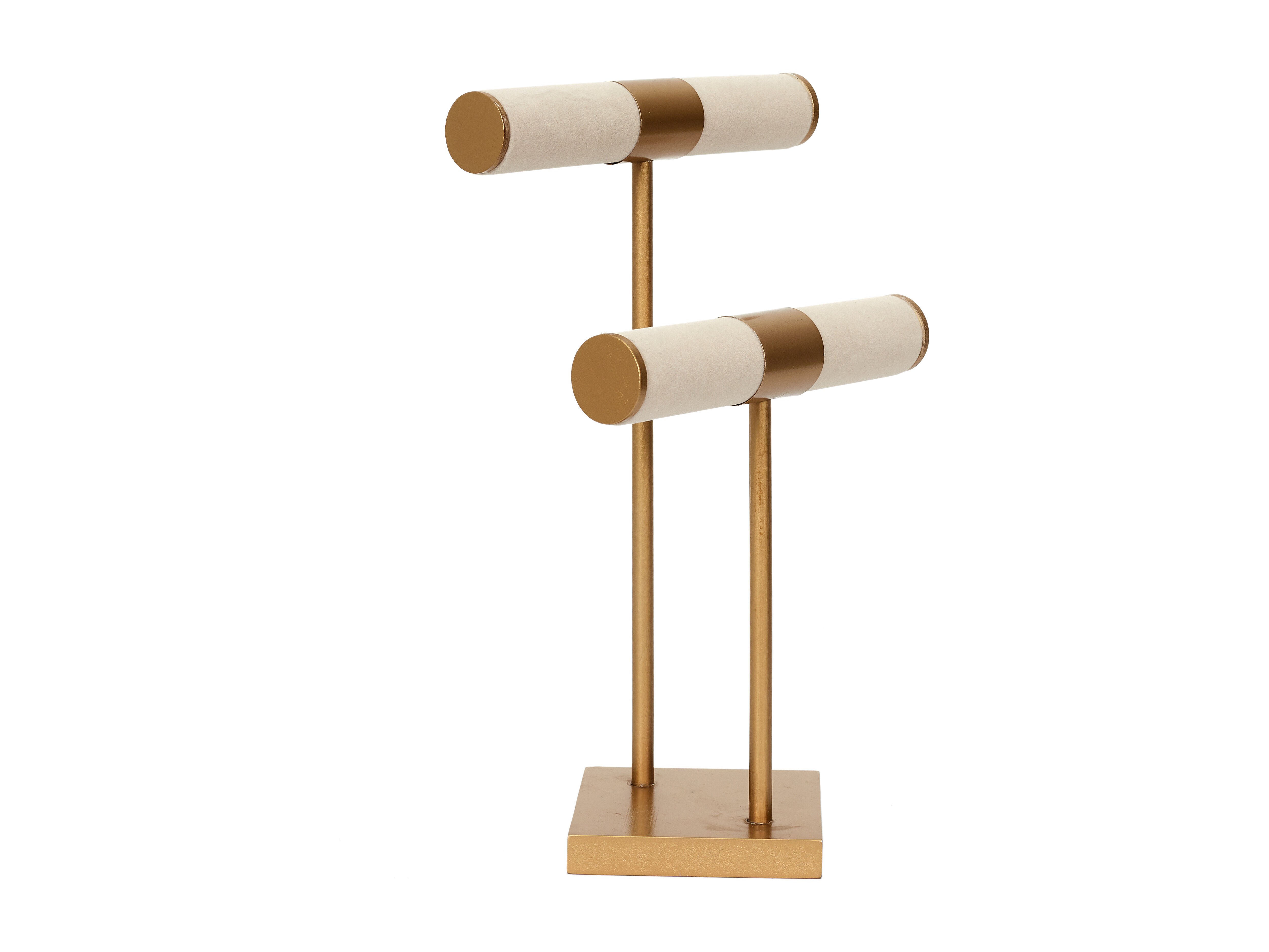 Porte Bijoux Double Beige Pied Dore Beige, Marron